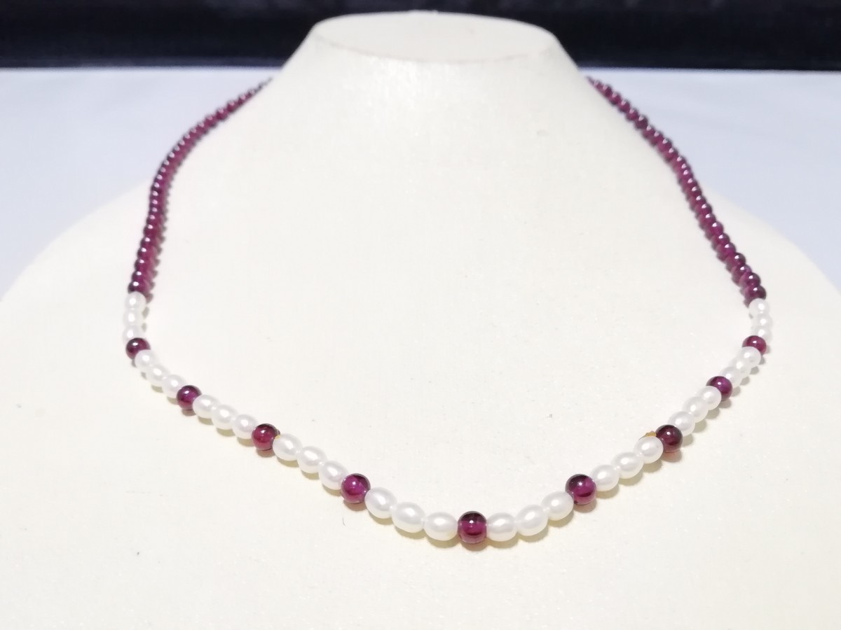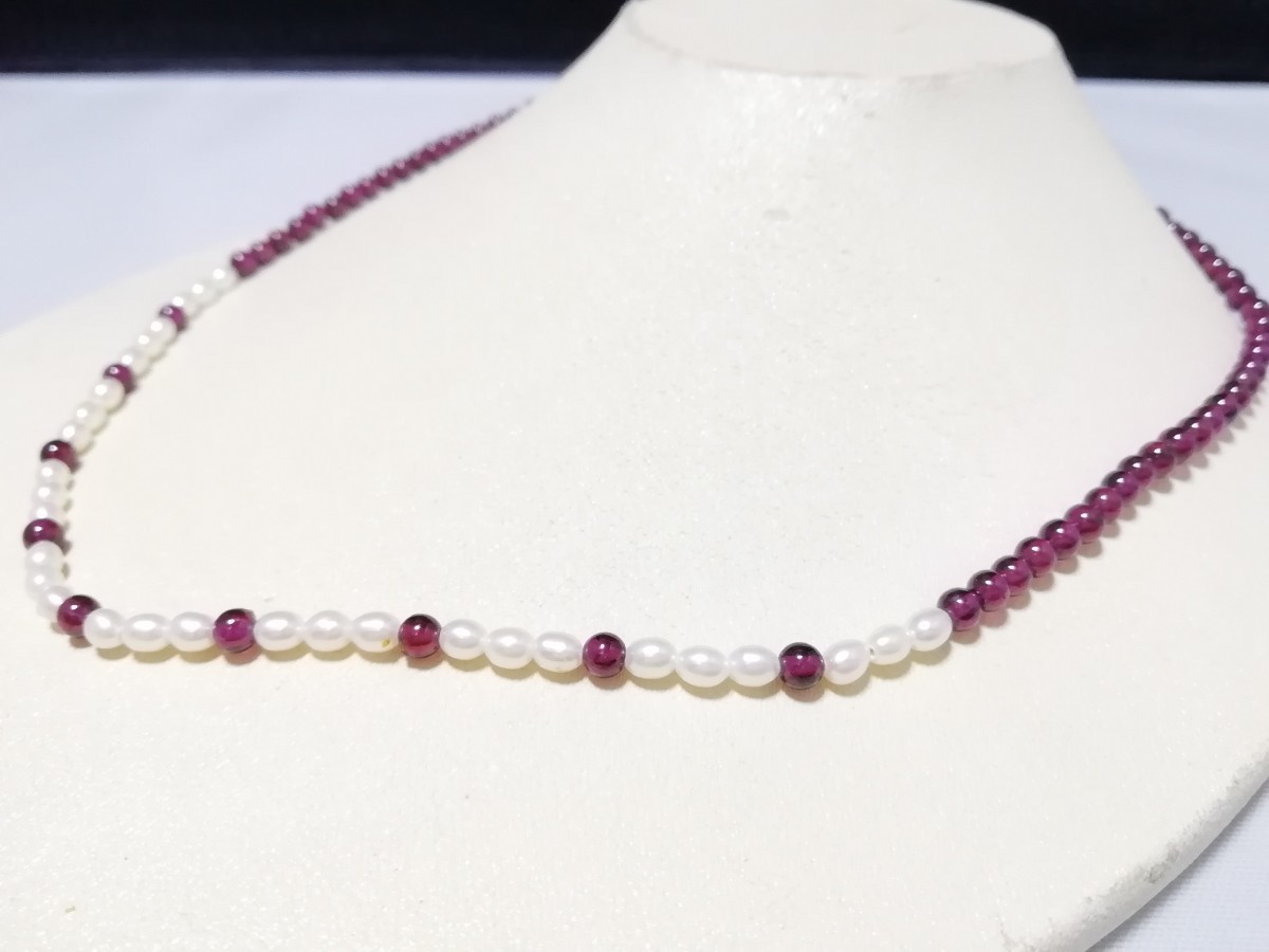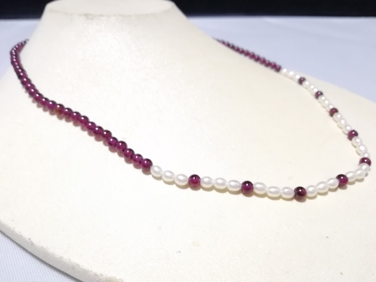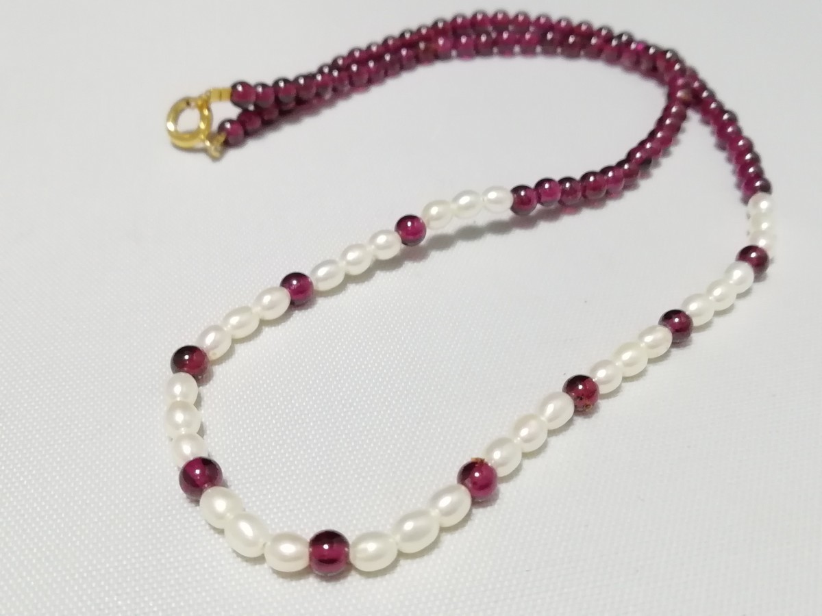 天然ガ−ネット丸玉&淡水パールコンビネックレス