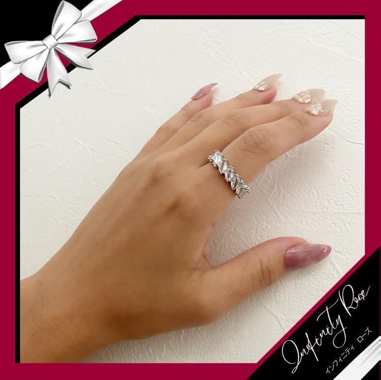#シルバー斜めオーバル高価爪留めクリスタルリング