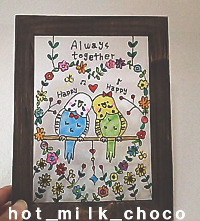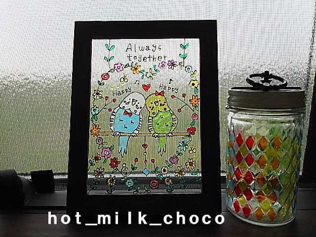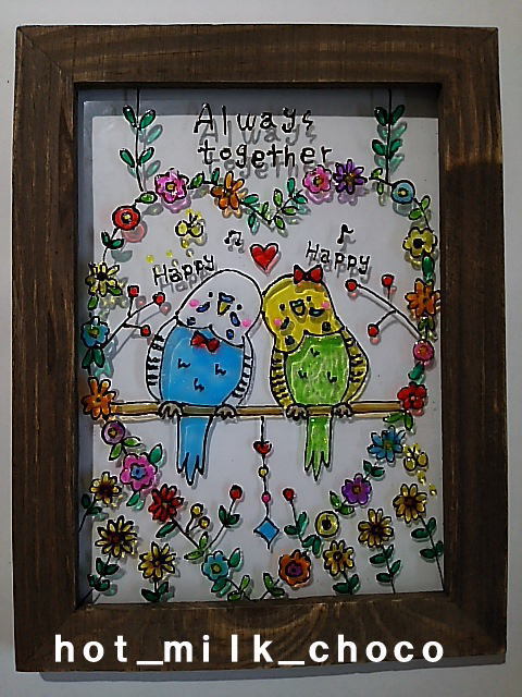 絵を描いたステンドグラス風のアートです。