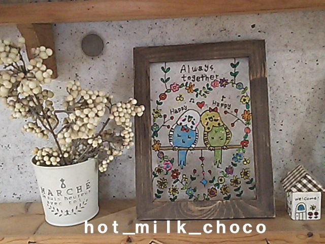 ★NO.L145★ステンドグラス風・2Lサイズ・インコ・鳥・小鳥・青・黄色・ハート・花・リース・花屋・看板・インテリア・イラスト・飾り・絵