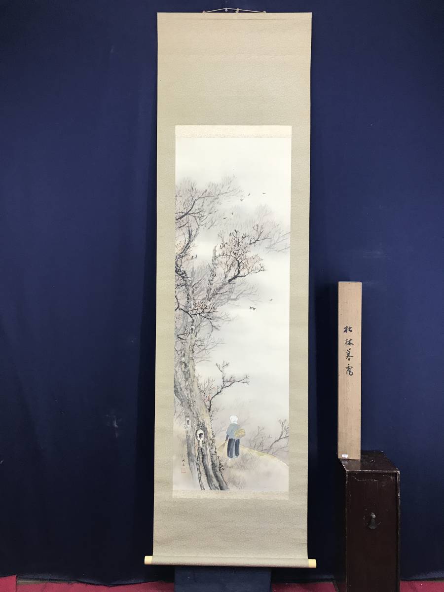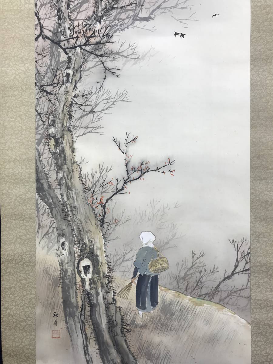 真作/岩城秋香/秋山枯林図/秋山水図/茸採り図/掛軸☆宝船☆AE-255
