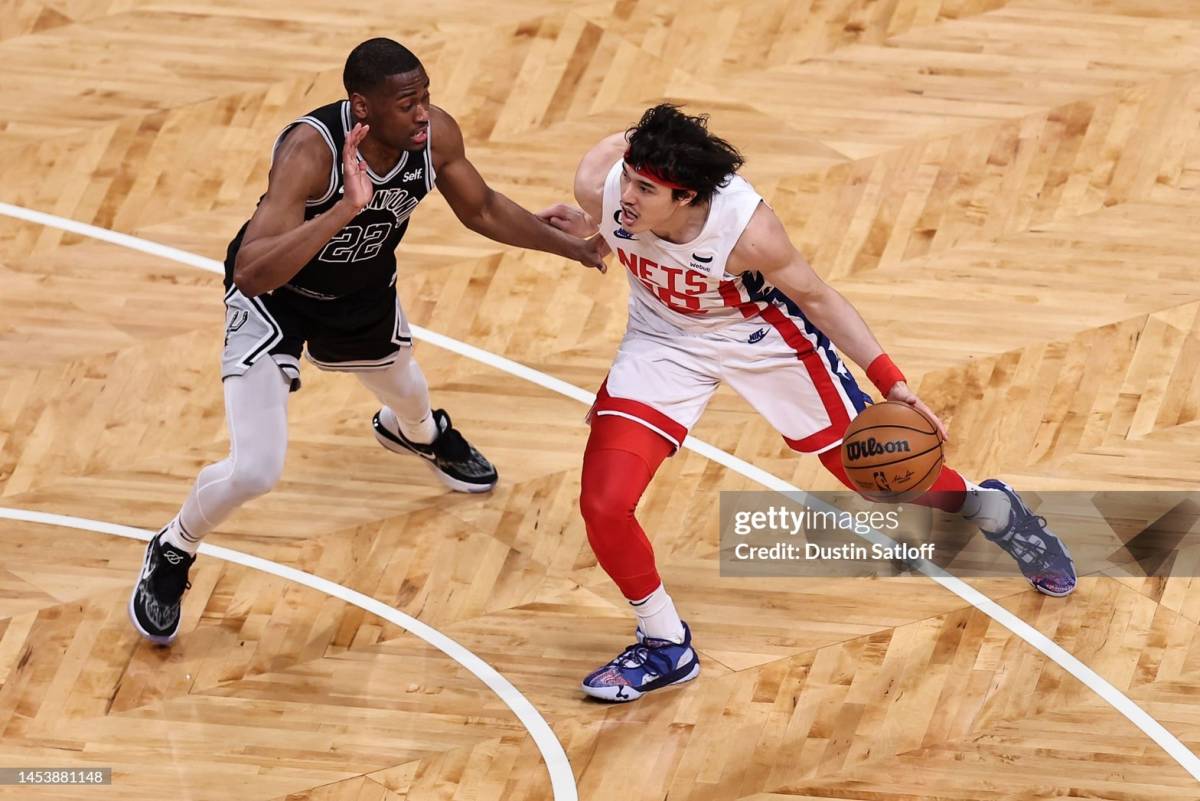 ネッツ本拠地のバークレイズセンターで2023年の12日に行われた対サンアントニオ・スパーズとの一戦で着用されたジャージ。