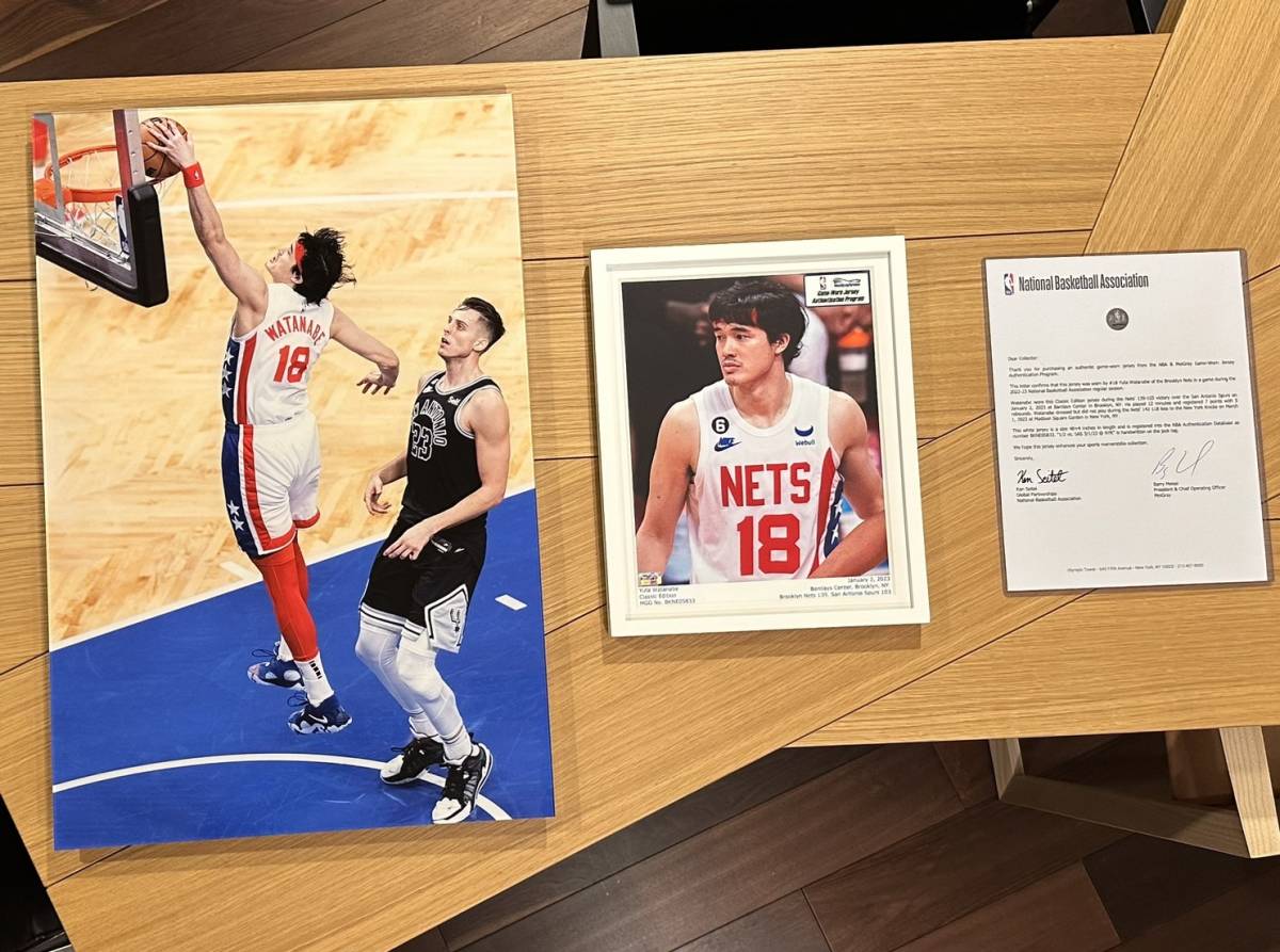 2022-2023 渡邊雄太選手着用ネッツクラシックジャージ、マイグレイ鑑定書・NBA公式写真鑑定書、写真照合特注アクリル額装パネル1台付属