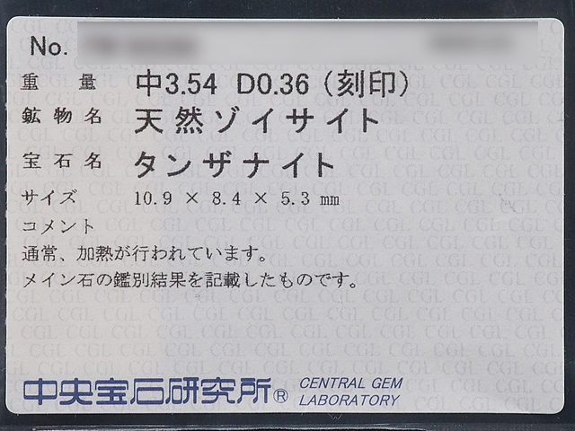 詳細:ノーブランド タンザナイト/3.54ct ダイヤ/0.36ct Pt900 プラチナ リング 11号 ソーティング付き 仕上済