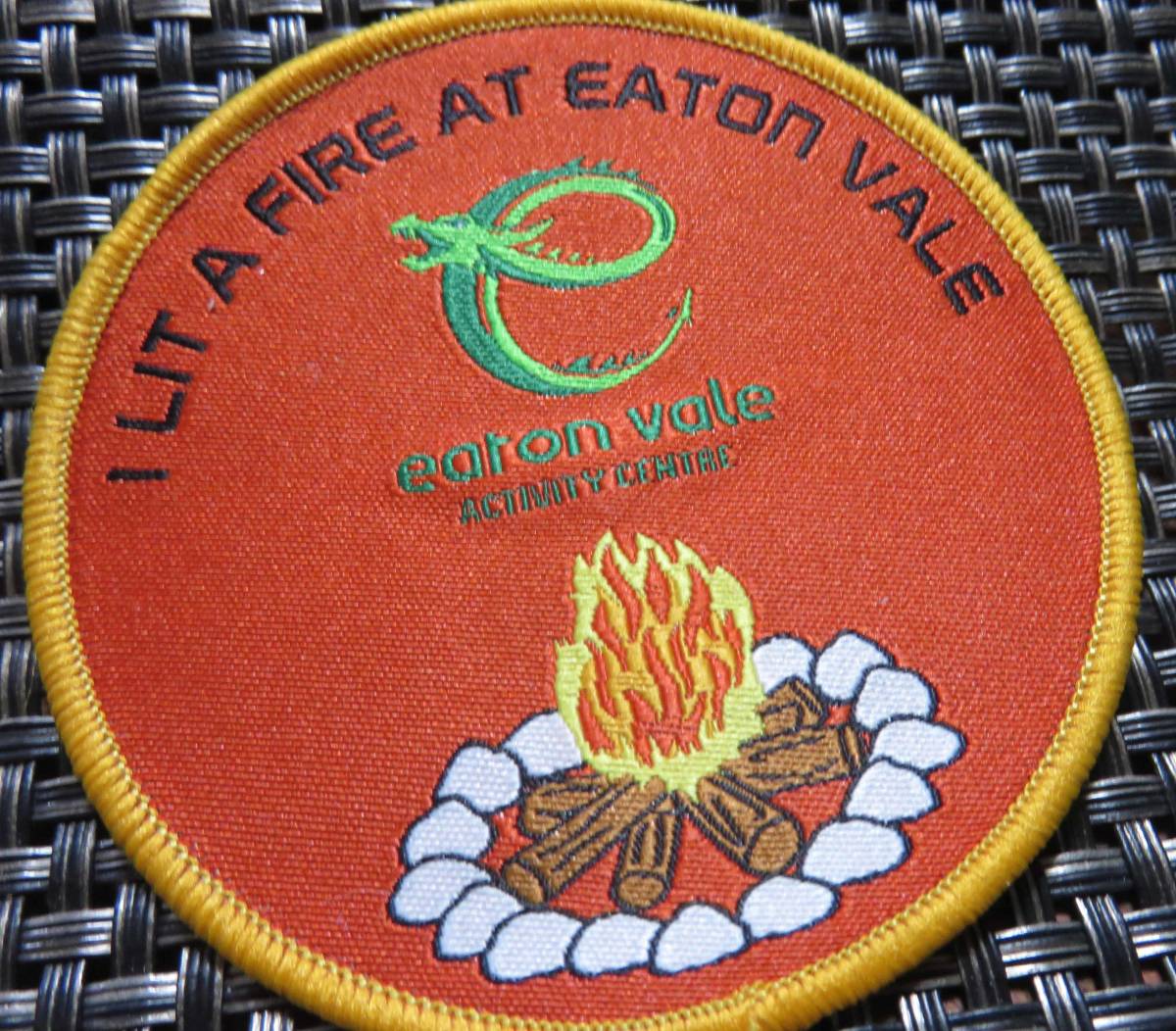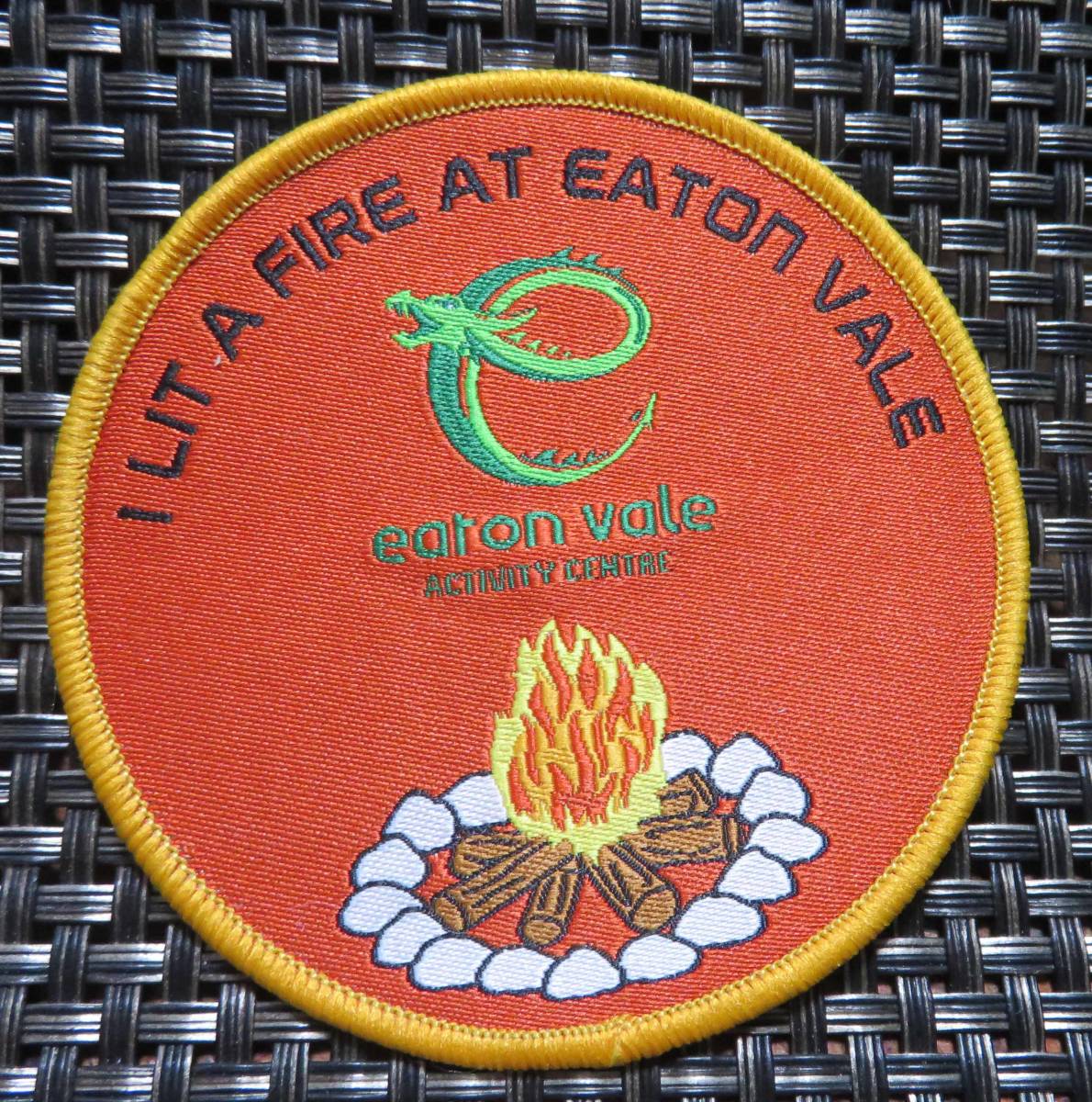 《野営UK焚火》円型『キャンプファイヤー 』『I LIT A FIRE』 新品イギリス 英国UK Scouting Easton Vale Activity Centre 刺繍ワッペン