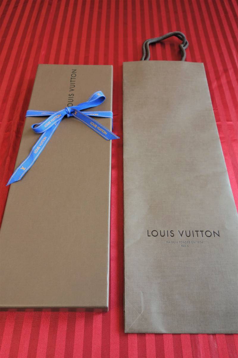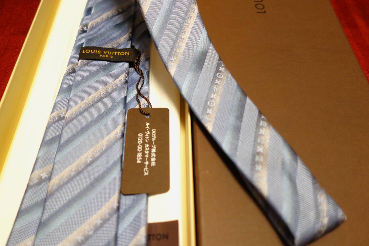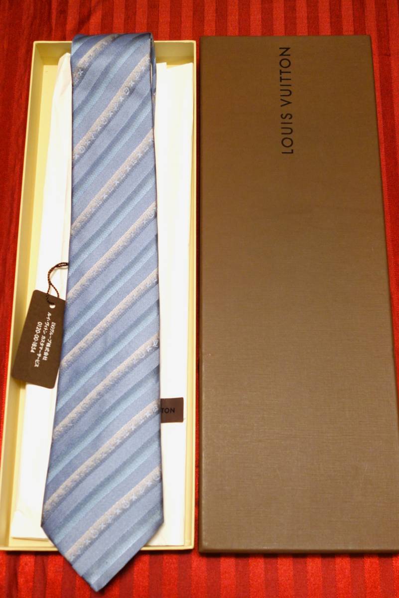贈答OK 希少 タグ付き未使用品 ルイヴィトンネクタイ クラヴァット・ディスティンクション モノグラムレジメンタルストライプ ライトブルー系