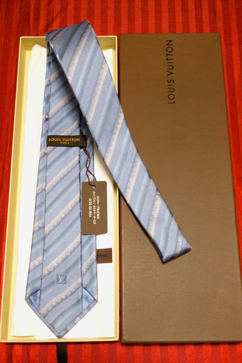 ルイヴィトンモノグラムレジメンタルストライプネクタイ、ライトブルー系の出品です。