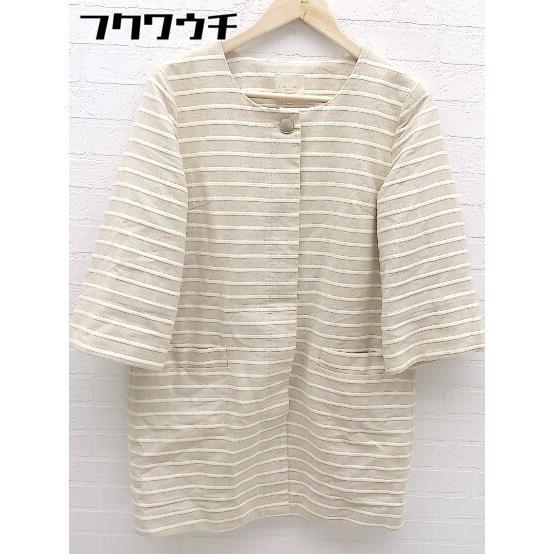 ◇ LAPIS LUCE PER BEAMS ラピスルーチェパービームス ボーダー 長袖 ノーカラー コート サイズ38 ベージュ レディース