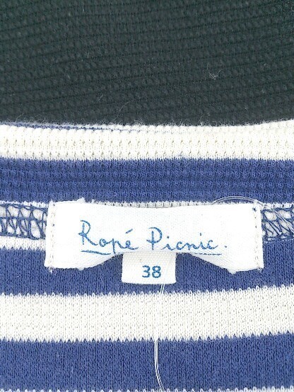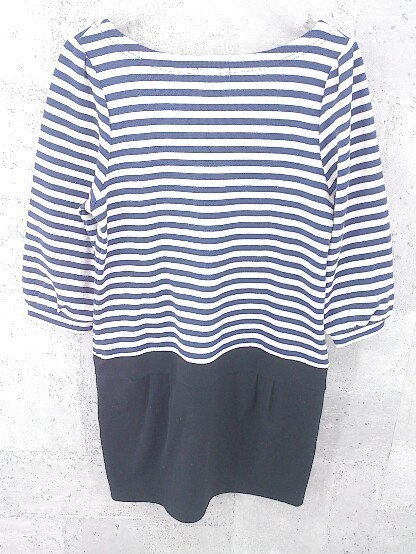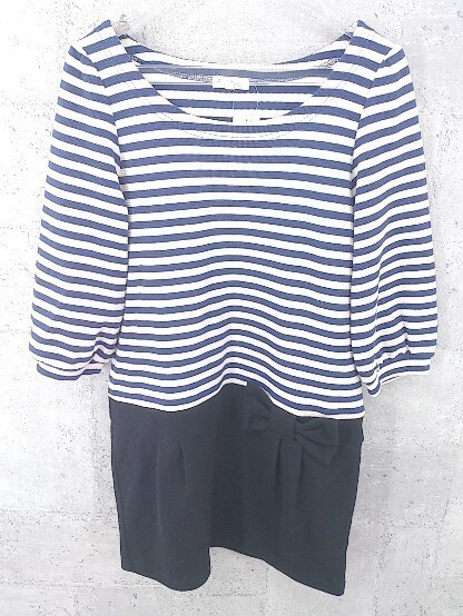 ◇ ROPE PICNIC ロペピクニック ボーダー リボン 七分袖 膝丈 ワンピース 38 ブルーホワイト ネイビー レディース