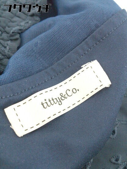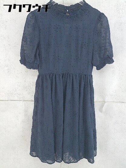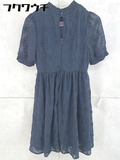 ◇ titty&Co. ティティーアンドコー 刺繍 モックネック 半袖 ミニ ワンピース サイズS ネイビー レディース