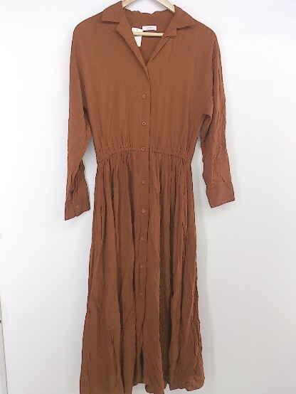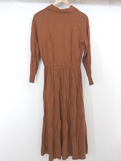◇ LOWRYS FARM ローリーズファーム レーヨン100% 開襟 長袖 ロング ワンピース サイズM ブラウン レディース P