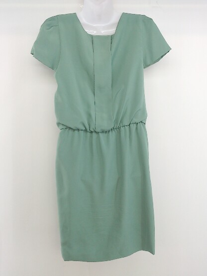 ◇ nano universe ナノ ユニバース ウエストゴム 半袖 膝丈 ワンピース サイズF グリーン レディース