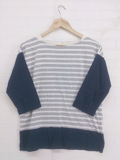 ◇ BEAMS HEART ビームス ハート ボーダー 七分袖 Tシャツ カットソー グレー ネイビー ホワイト レディース