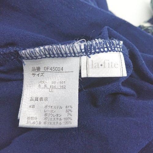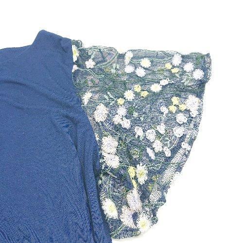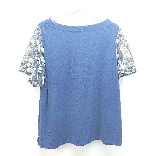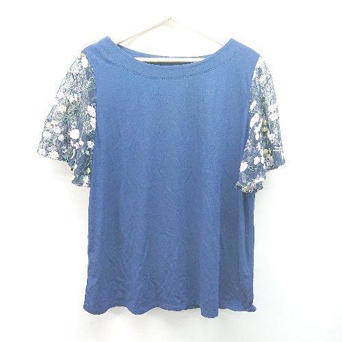 ◇ la*fite ラフィット 花柄刺? レース素材 クルーネック 半袖 カットソー サイズLL ブルー レディース E