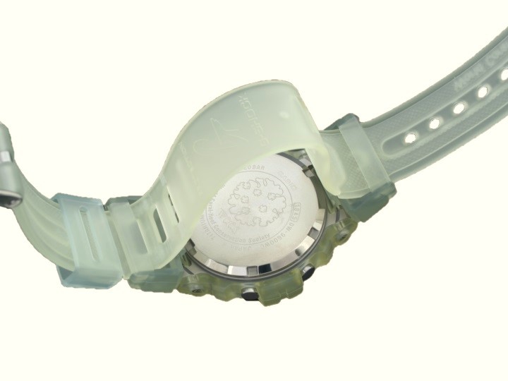 サンゴ礁は熱帯雨林と同じように地球の二酸化炭素をコントロールしているといわれることから、「海の森」と呼ばれ、様々な海中生物の生存場所であると共に、光合成による酸素の供給源となっています。W.C.C.Sオフィシャルモデルは、この海洋生態系の源であるサンゴ礁保護の活動をサポートします。G-SHOCKのベゼル部には、チタンを採用し磨きをかけてミラー調にデザイン。また、ELバックライト発光時には、トリプルマンタをモチーフにしたマークが浮かび上がります。