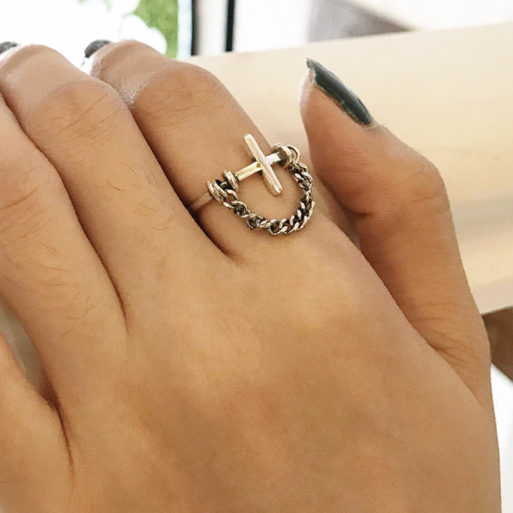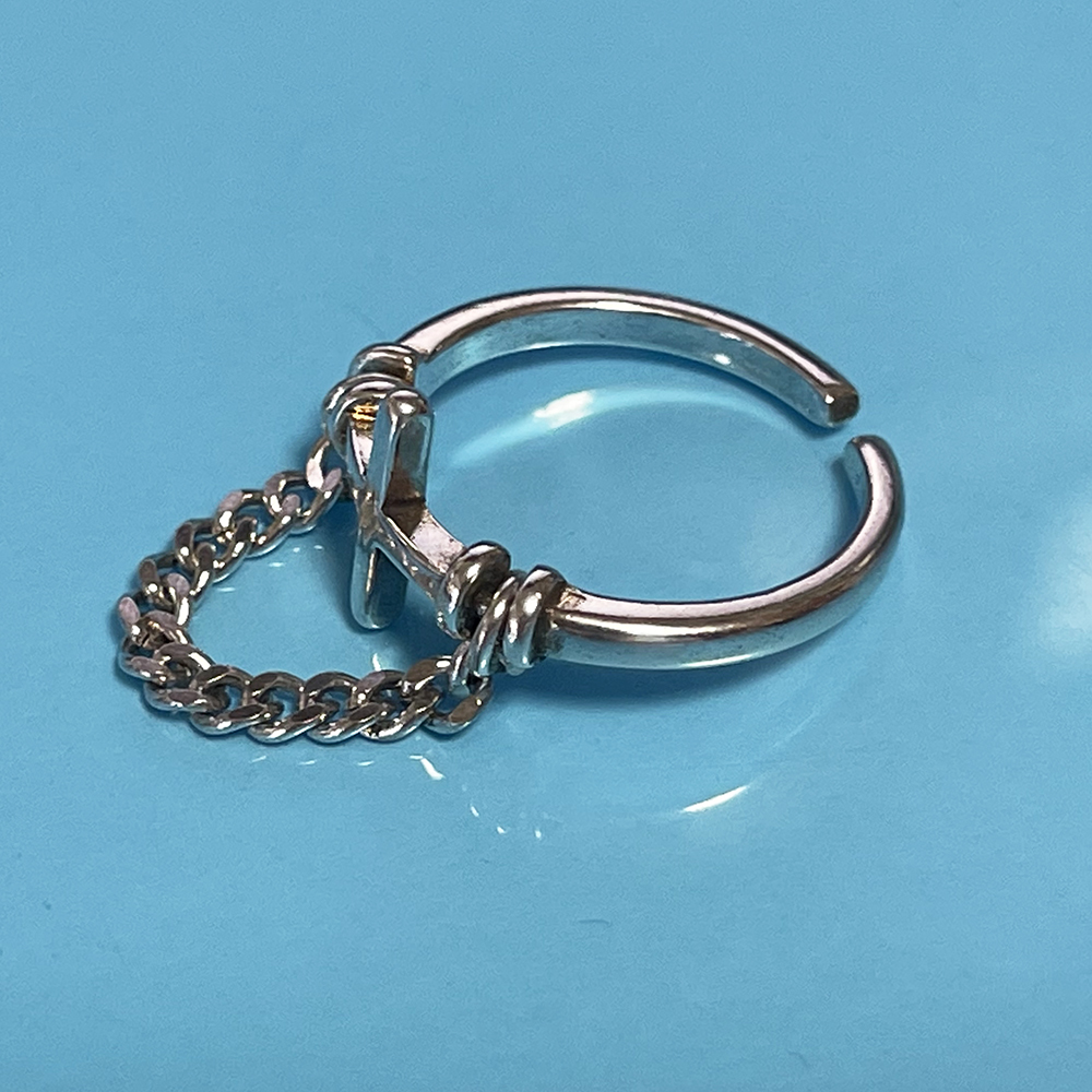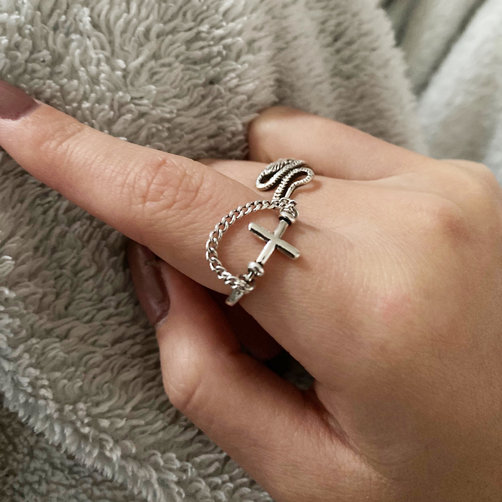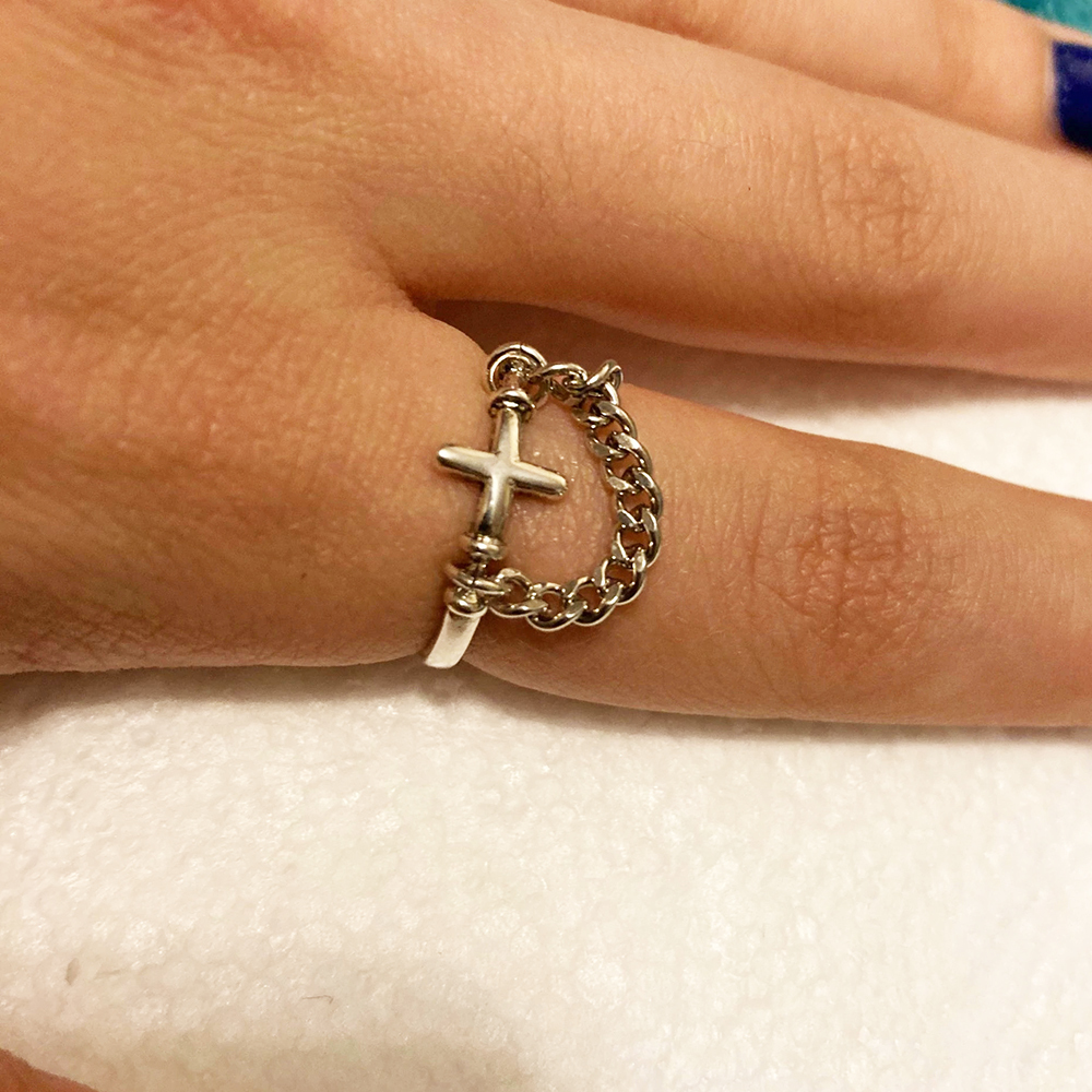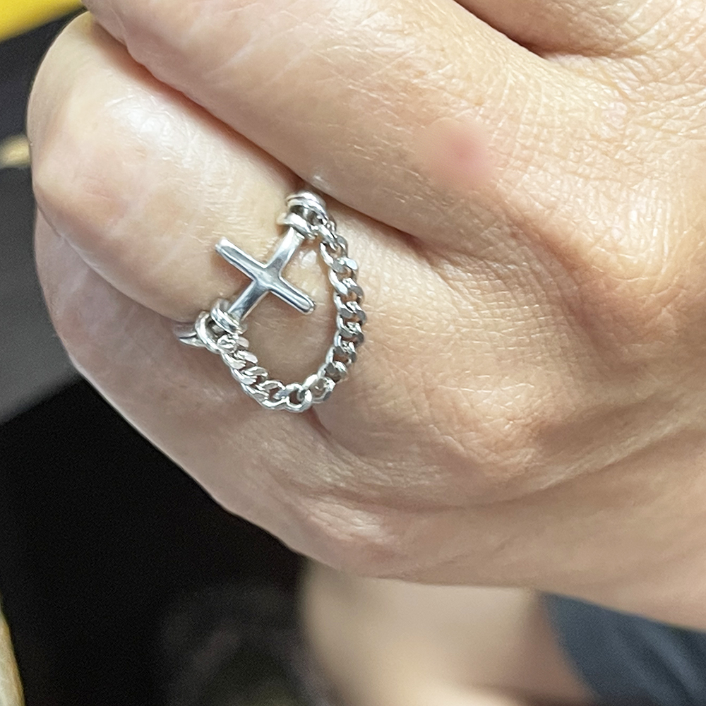リング シルバー 指輪 レディース クロス チェーン 十字架 アクセサリー 調整可 オープンリング フリーサイズ ジュエリー ロザリオ