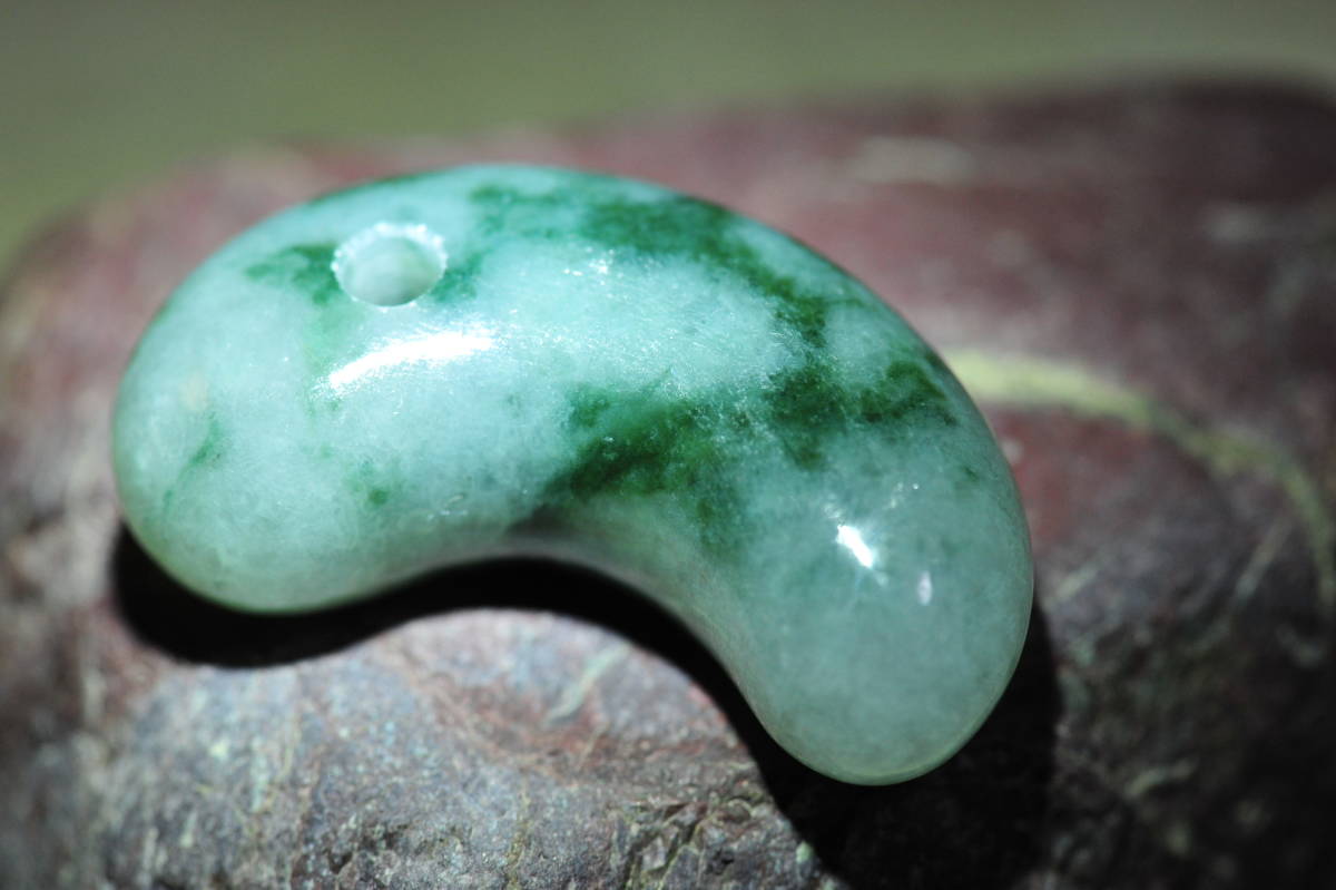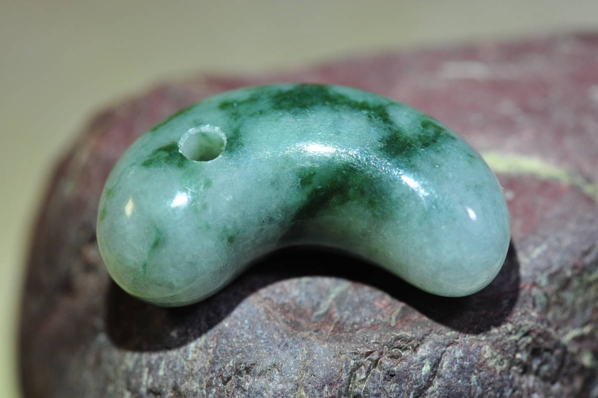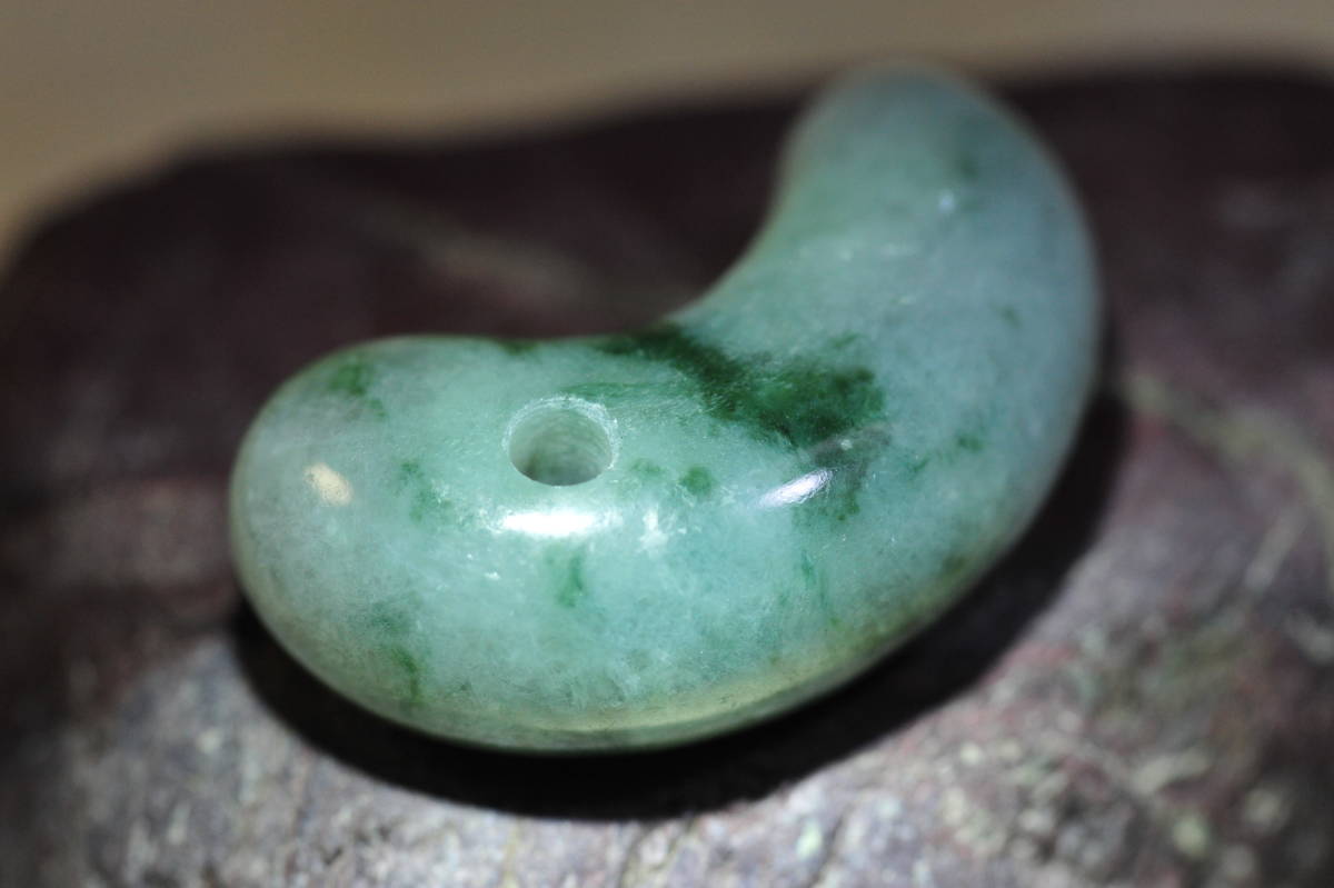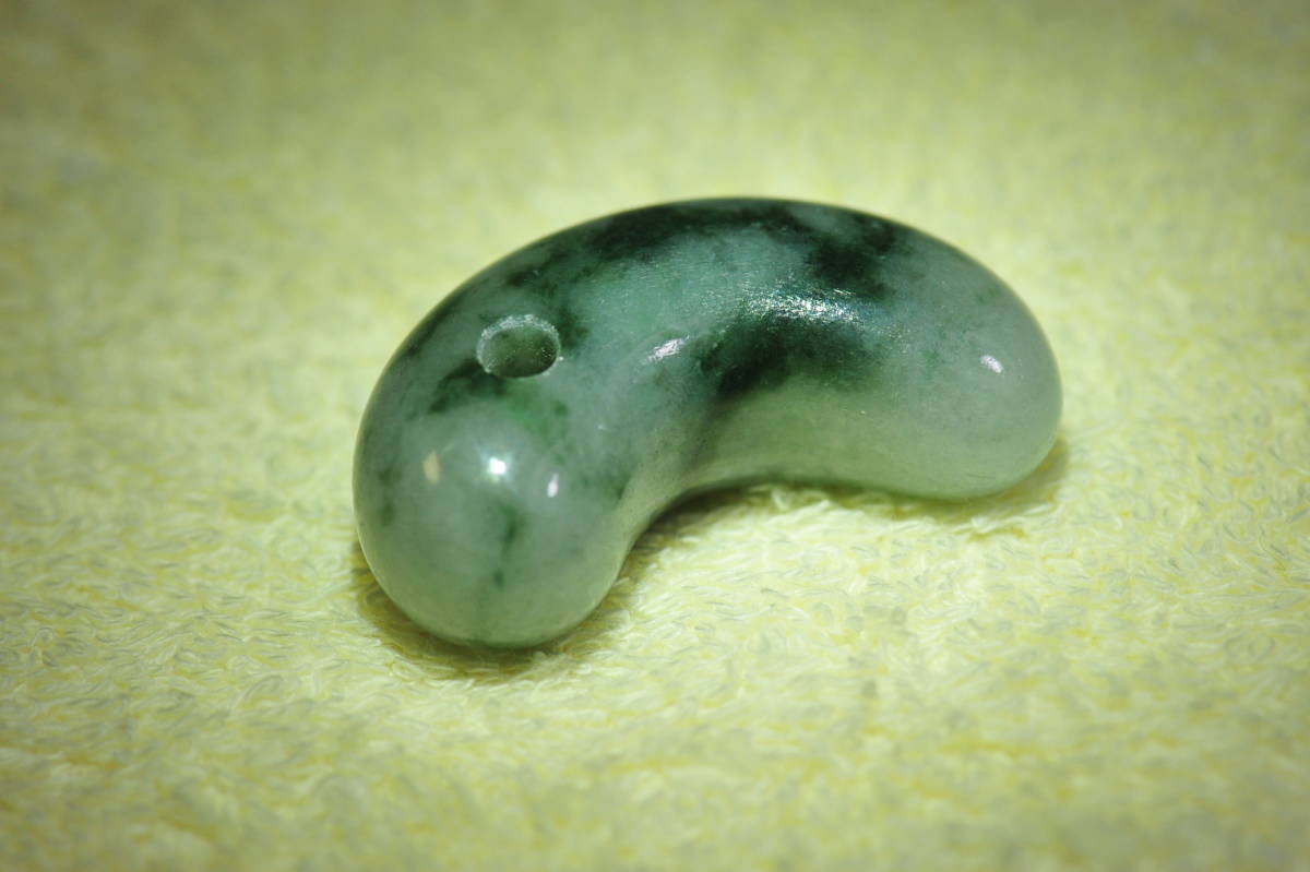 ミャンマー産翡翠を使って、日本国内で製作された翡翠の勾玉です。