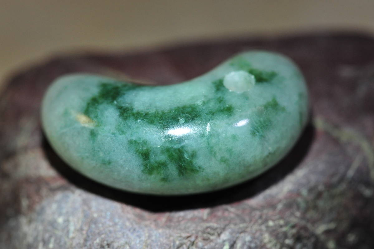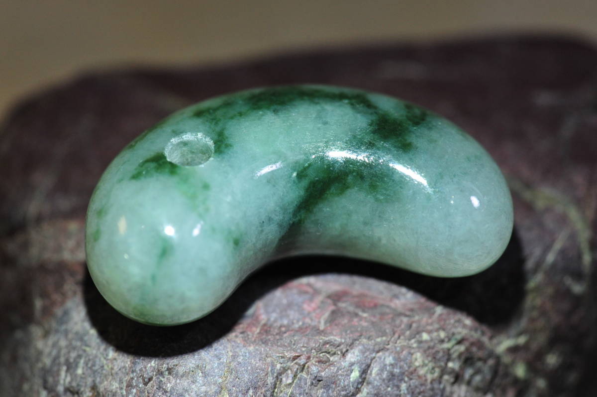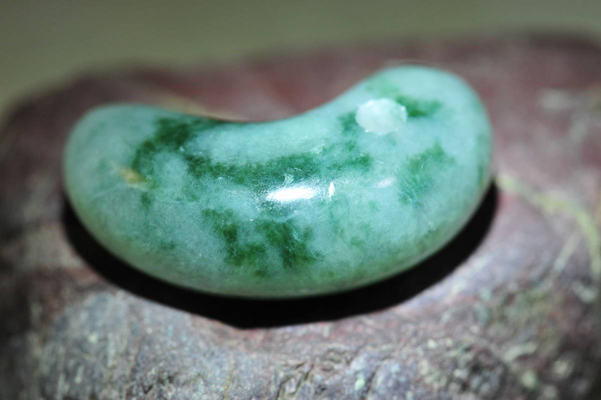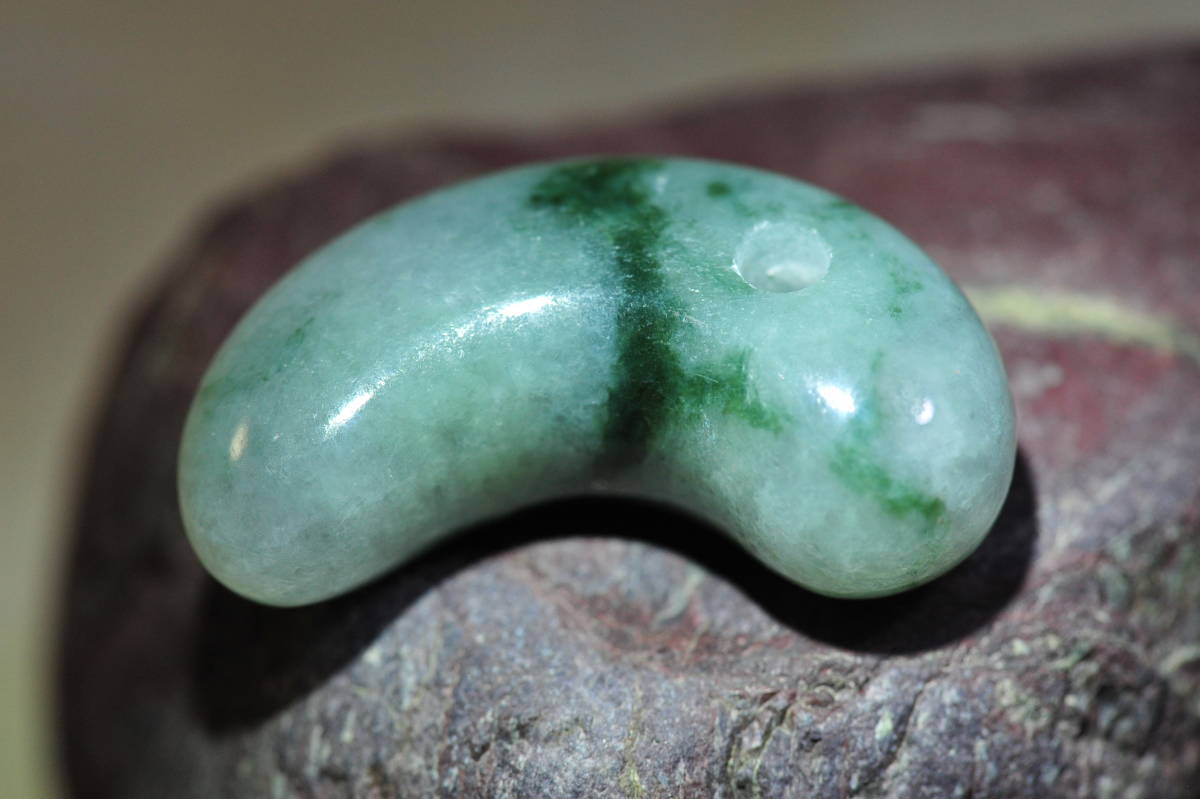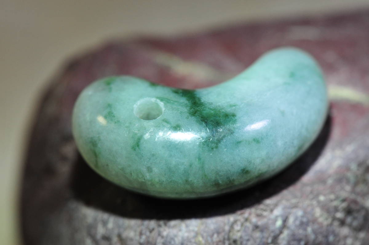 ミャンマー産翡翠を使って、日本国内で製作された翡翠の勾玉です。