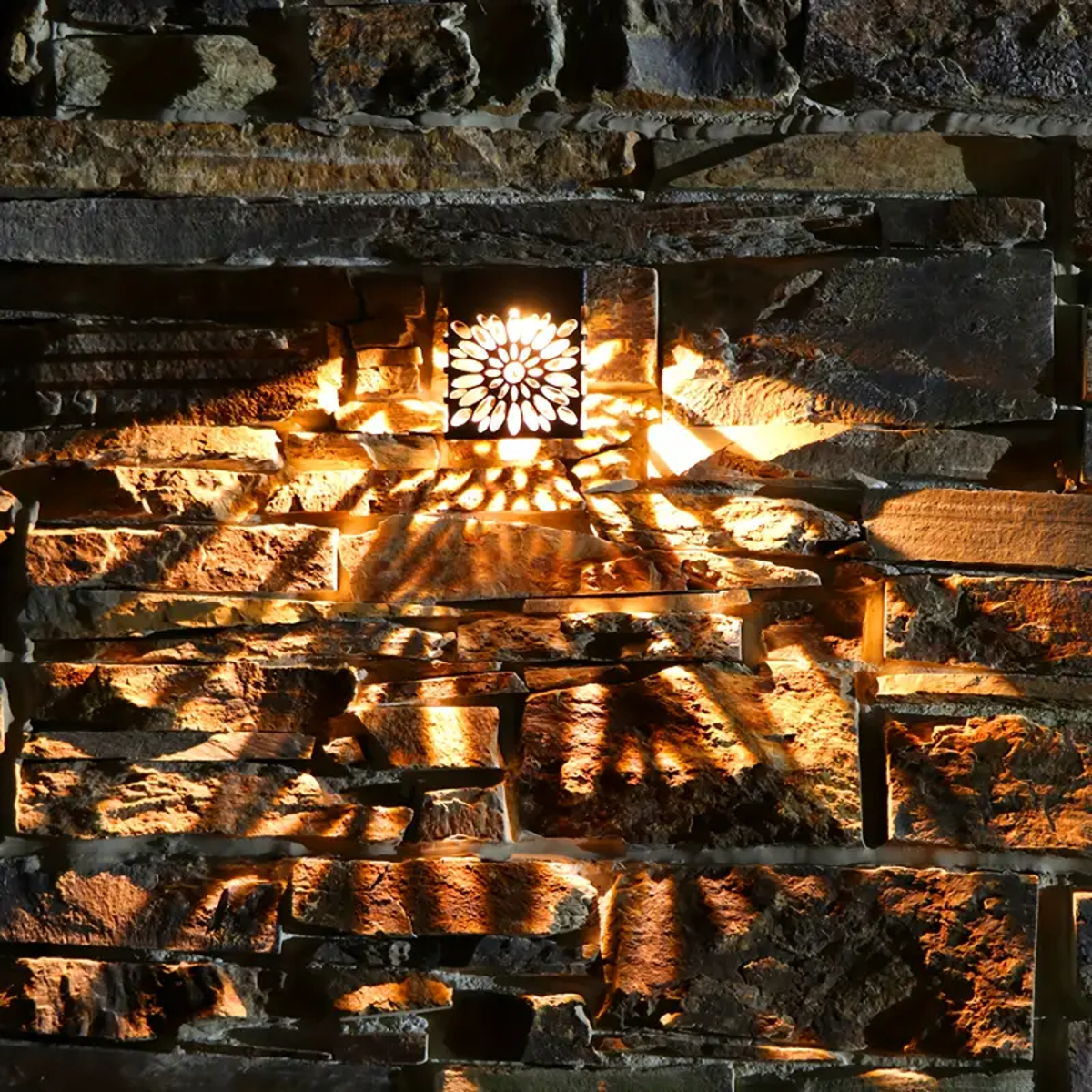 放射線状の壁画のような光りが魅力的なソーラーライトです。