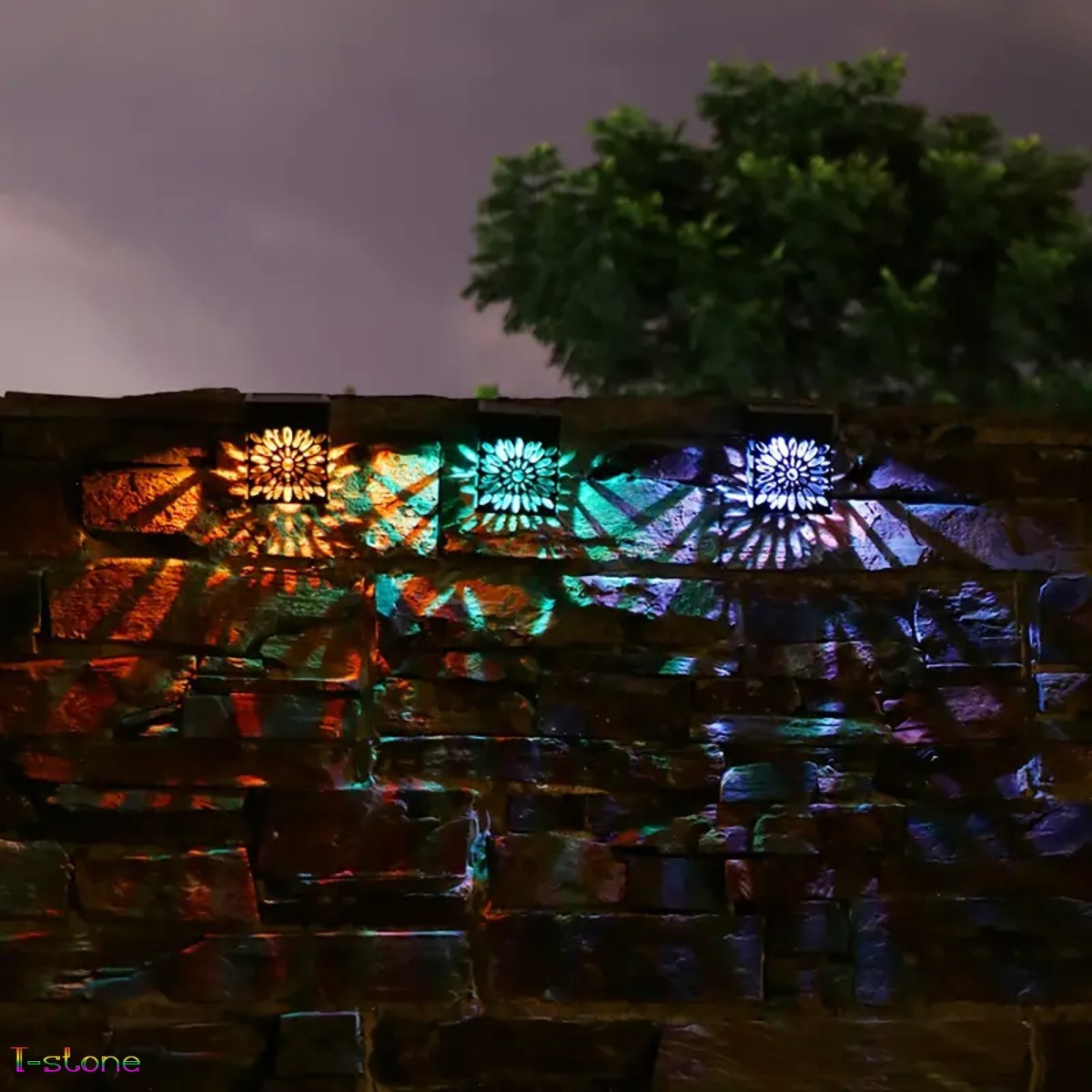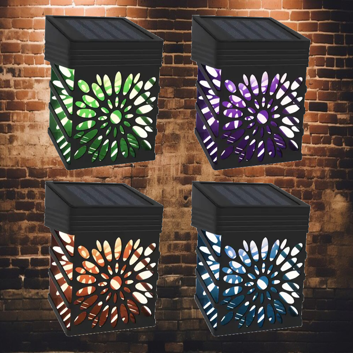 ソーラーライト 壁掛け野外ライト マルチカラー+暖色 4個セット ガーデンライト お洒落 インテリア 太陽光発電 LED 庭 装飾 雰囲気照明
