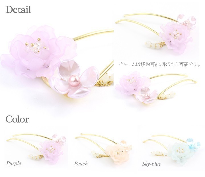 商品説明 | 大きなパステルお花は1つ1つ手作りです!! つやけし素材が上品な大人顔☆ ゆらゆらビーズモチーフは取り外しもできますので、スタイルに合わせて使い分けもできます。 使いやすいU字デザインで、夜会巻などのアップスタイルも手軽に楽しめます。 パーティーや結婚式などはもちろん、ちょっとしたお出かけにもお勧めのアイテムです。 |