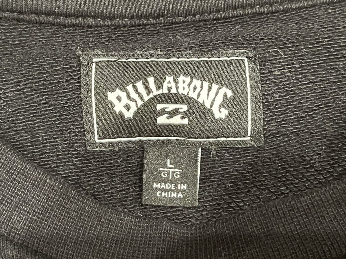 BILLABONG ビラボン スウェット です。サイズはメンズLで、カラーはブラック。実寸は肩幅47、身幅55、袖丈63、着丈65cmとなります。ノークレーム・ノーリーターンでお願いします。