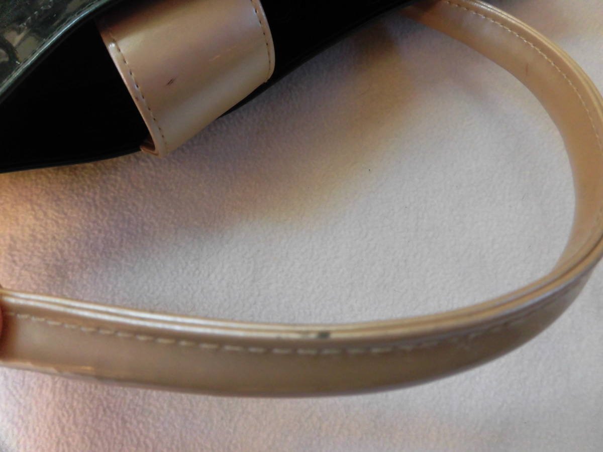 持ち手やベルトのベージュ部分に黒のシミがあります
