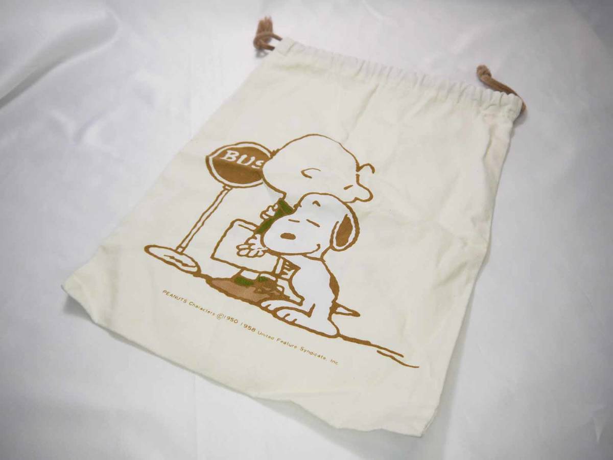 商品名:【キャラクターグッズ】スヌーピー 巾着(長辺33cm) ぬいぐるみ・依類・弁当・おもちゃ入れ ピクニック・日常使い 迅速発送 美品