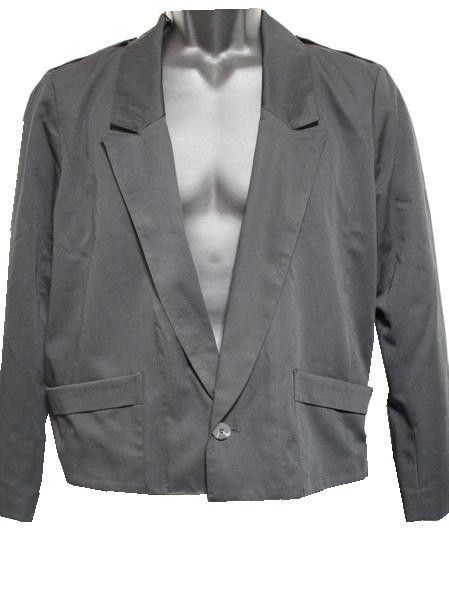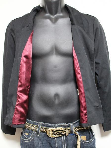 Blade商品名 メンズ ジャケット商品番号 A9813カラー ブラックサイズ サイズ2(M)【平置実寸】肩幅42cm袖丈61cm身幅52cm着丈62cm(多少の誤差はご了承下さい。)素材 表地(ポリエステル65%レーヨン35%)裏地(ポリエステル100%)状態 新品 コメント 中国製、フロント1つボタン★ポケット2、後裾ウエスト部分に調節用小ベルト、肩章。・掲載画像と実商品のカラーが若干異なることがございます。 お買い求めの際はご了承ください。