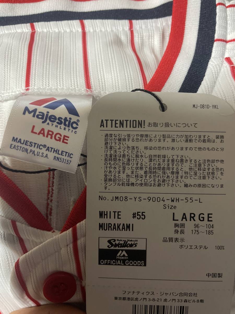 大人気 東京 ヤクルト スワローズ ファンクラブ 公式 村上宗隆 ホームユニホーム 55番 majestic社製 正規品 入手困難 超レア 激安 処分