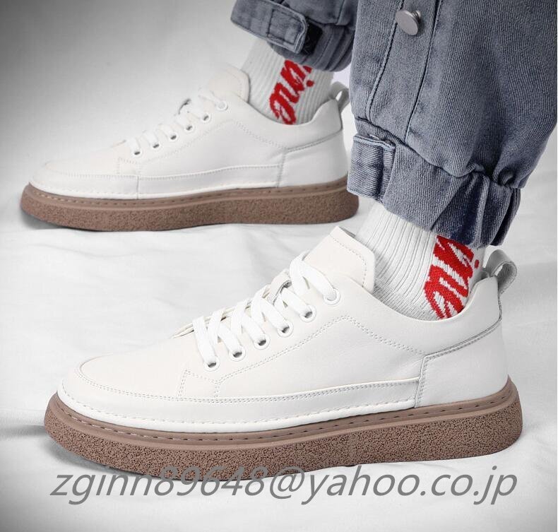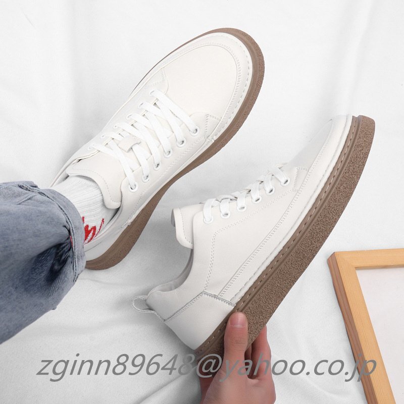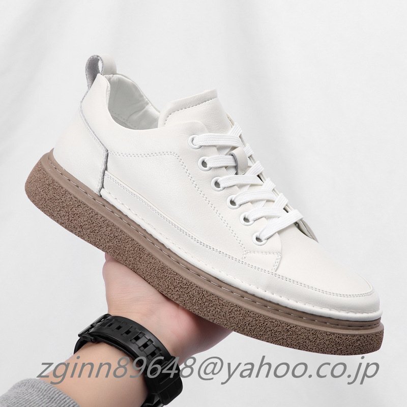 新入荷 スニーカー 牛革 メンズ 運動靴 メンズシューズ 本革 レザーシューズ 滑り止め 白靴 カジュアル 無地 お洒落 快適 黒 24cm~27cm