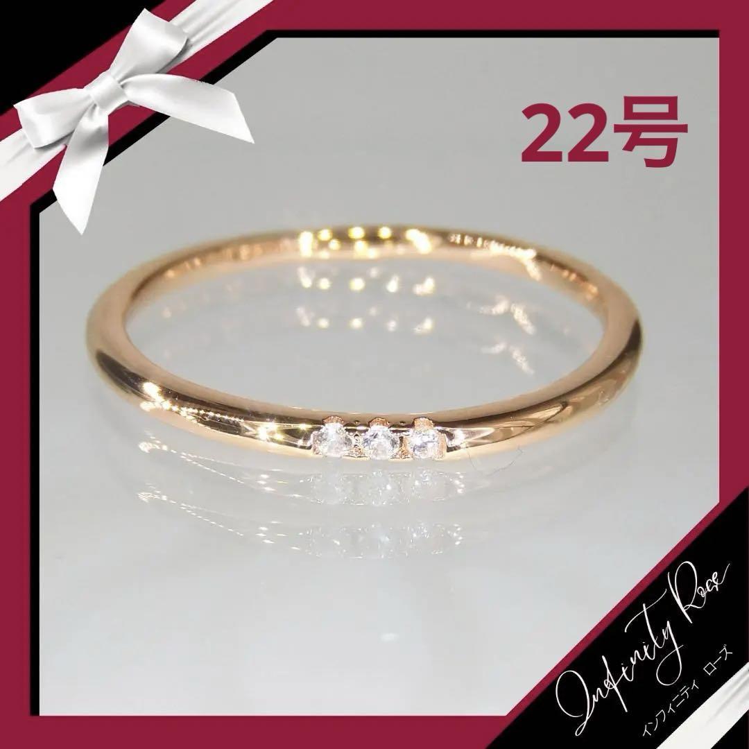 (R010P)22号 18KGPピンクゴールドのシンプル3粒細大人の指輪 リング