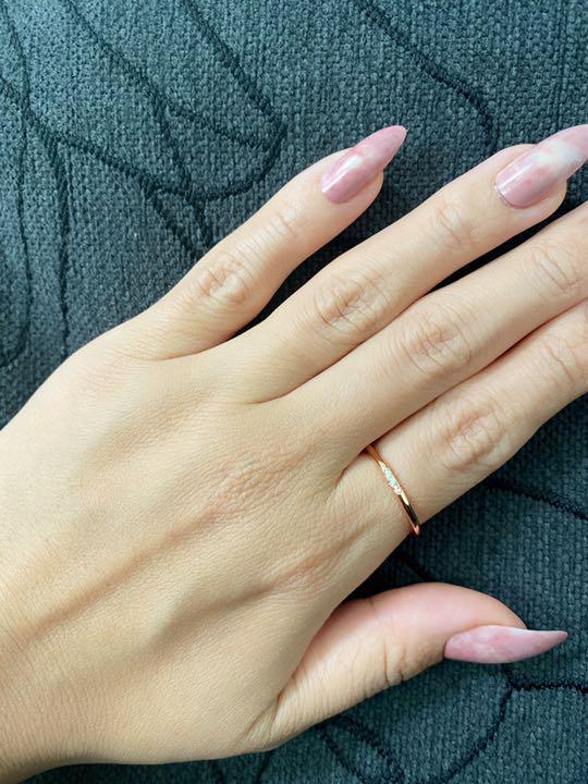 #18KGPピンクゴールドのシンプル3粒細大人の指輪