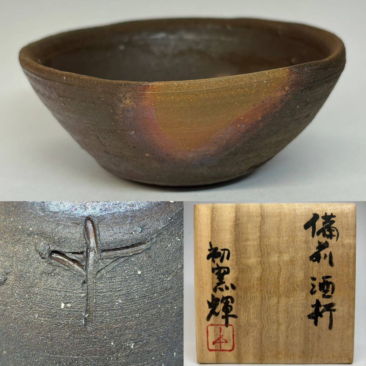 岡田輝 初窯 備前酒杯 共箱 共布 付属 師・藤原雄 備前焼 酒杯 酒器