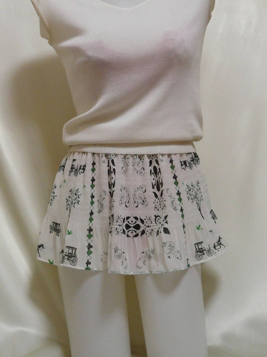 ♪♪白地シルエット柄系の超マイクロミニ☆清楚に透ける細かなプリーツ^^♪♪