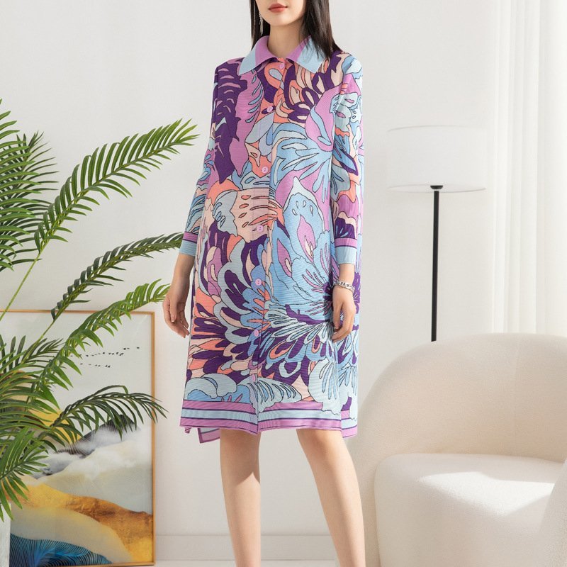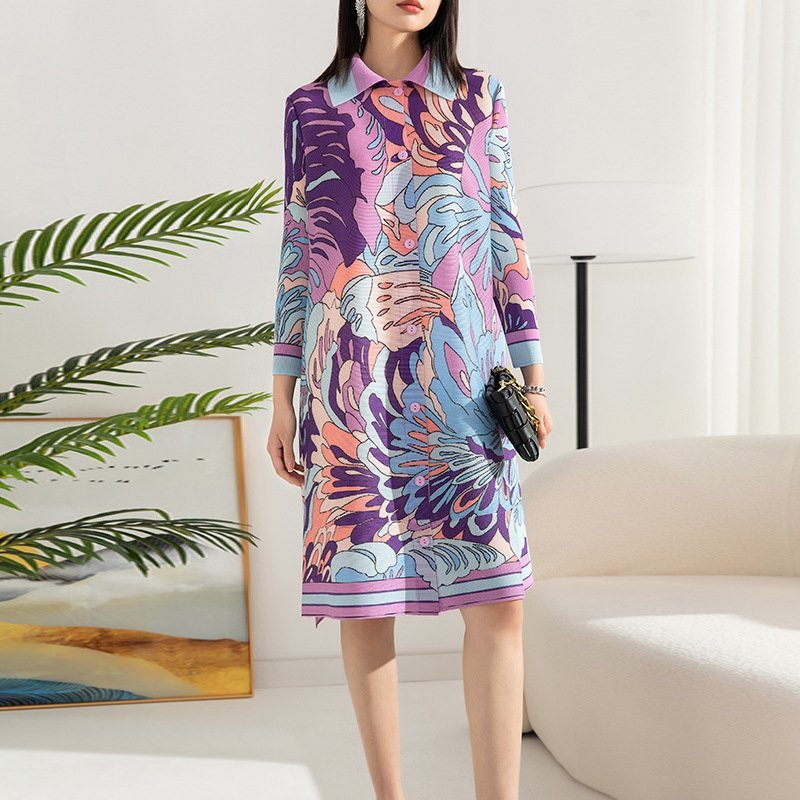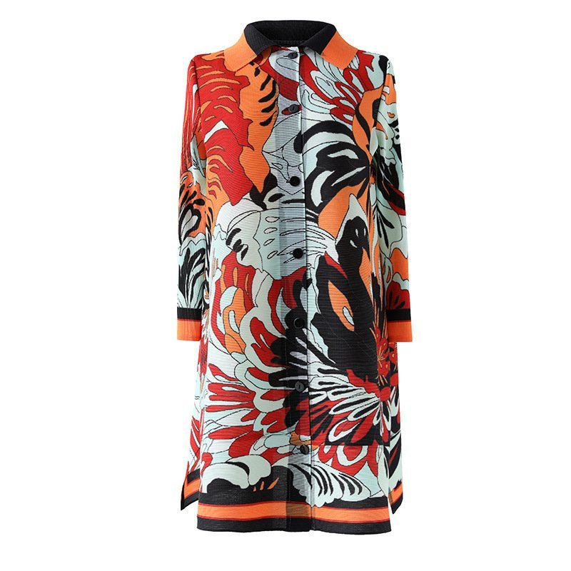 新入荷 春 お色選択可 チュニック プリーツ レディーストップス ワンピース 前開き弾力があり 素敵花柄 mzm909