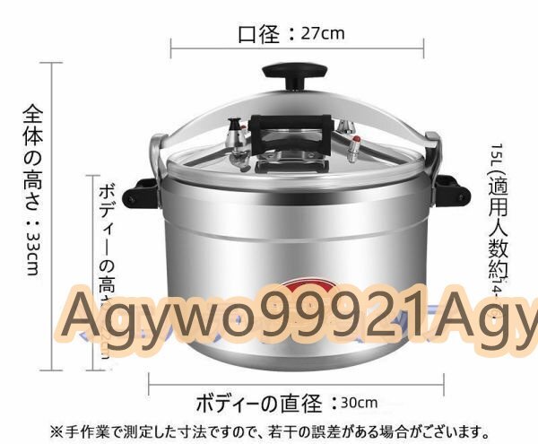 高品質 圧力鍋 15L 業務用 アルミニウム合金 圧力鍋 多機能調理器具 安全防爆 キッチン用品 ガス火/炭火 大容量圧力鍋 業務用 家庭用