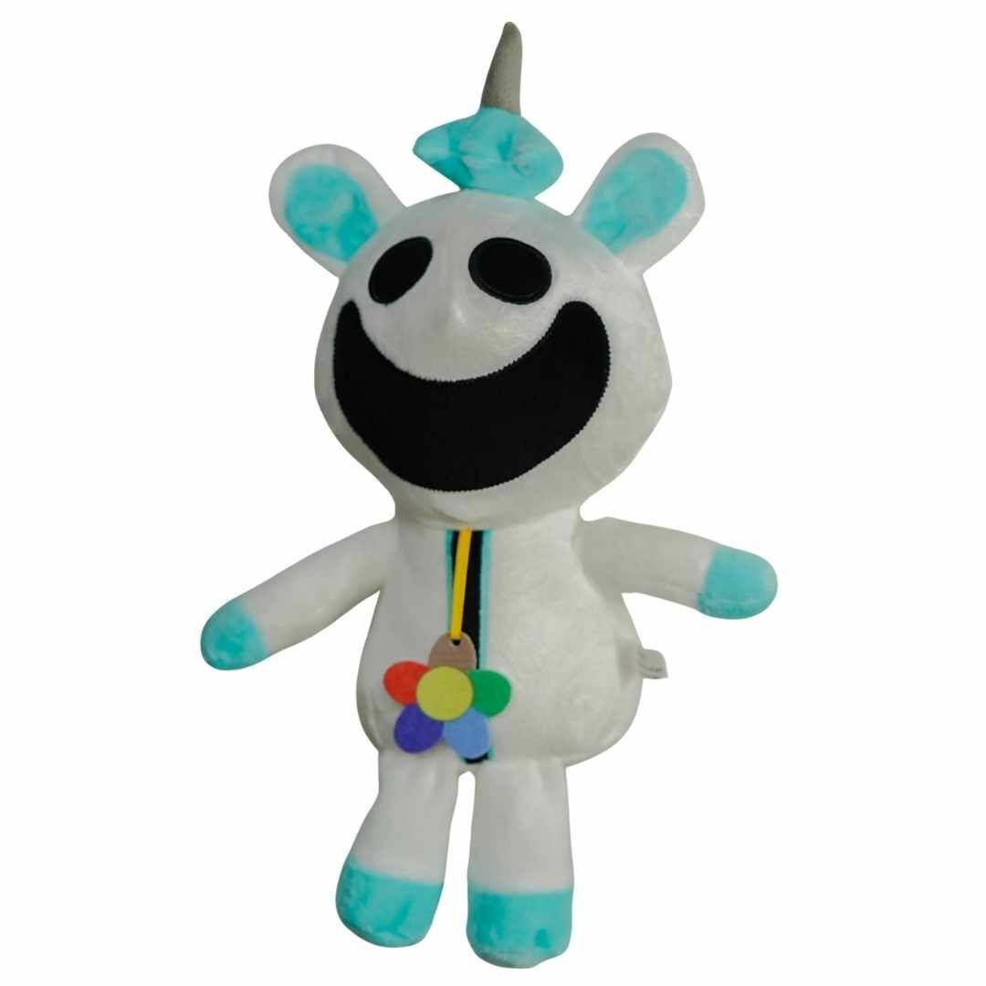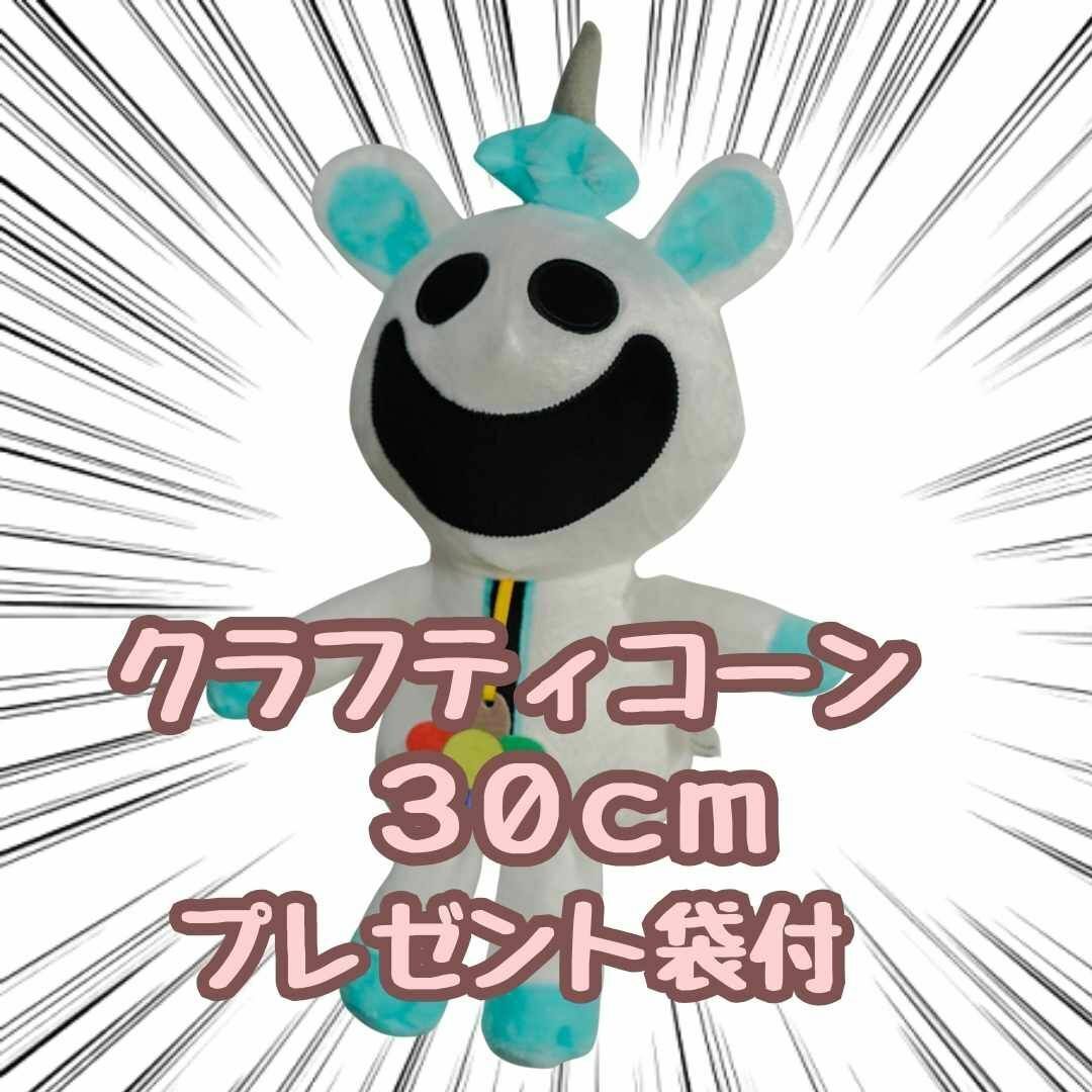 【クラフティコーン(CraftyCorn)】ホラーゲーム『POPPY PLAYTIME』に登場するキャラクター、Smiling Critters(全員、黒白目に三白(黒)眼、不自然なほどに口角がつり上がった三日月形の口などが特徴)のうちの一人。性別はメス。名前のコーンは恐らくユニコーンのことでクラフティはクラフトのことだと思われるがクラフティを直訳すると「狡猾な、ずる賢い、陰険」という意味であり「狡猾なユニコーン」という意味になる。それを証明するかのようにパネルでの台詞では最初は優しげな声と口調でお絵描きを手伝って欲しいと言ってくるが、途中から主人公に赤色を隠したと言い掛かりをつけてきて最後はドスの効いた声と口調で「出せよ!」と豹変する。どうやら穏やかな性格を装って本性を隠している腹黒キャラなのだと思われる。香り:ジャスミン、胸飾り:虹の花が特徴。