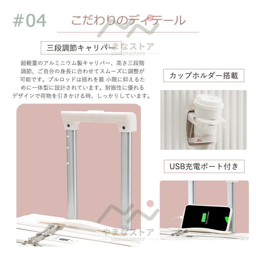 ※こちら製品のUSBポートは二つのtype-a/cケーブルが必要となります。モバイルバッテリーを裏ポートに接続のうえ、もう1つのケーブルを使用してスマホを接続すると、スーツケース外の青いLEDライトが点灯するとチャージすること可能になります。