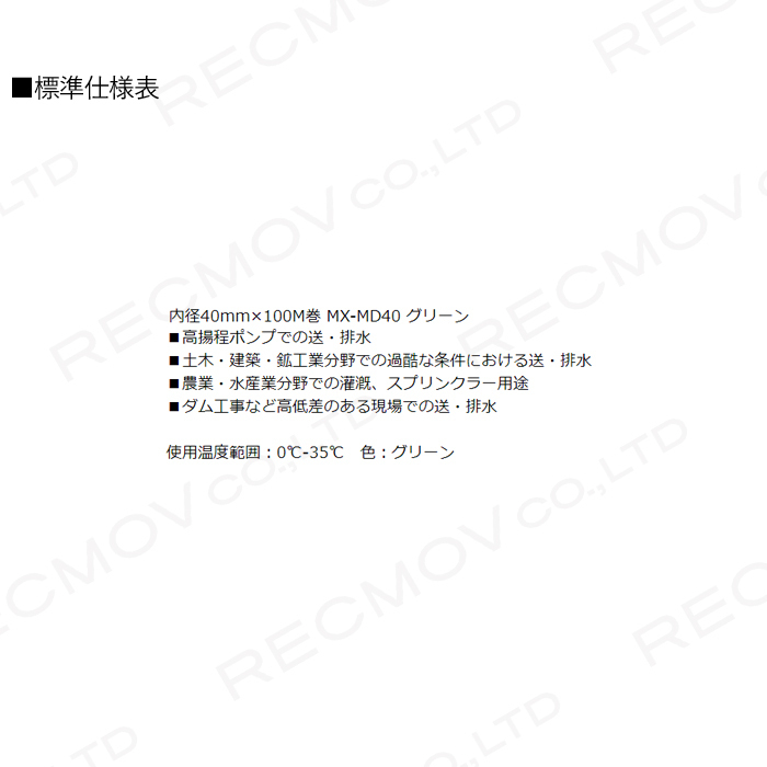 ホース 100m カクイチ 内径40mm マックスフローMD 送水ホース 中圧タイプ 土木 水 耐摩耗 止水板