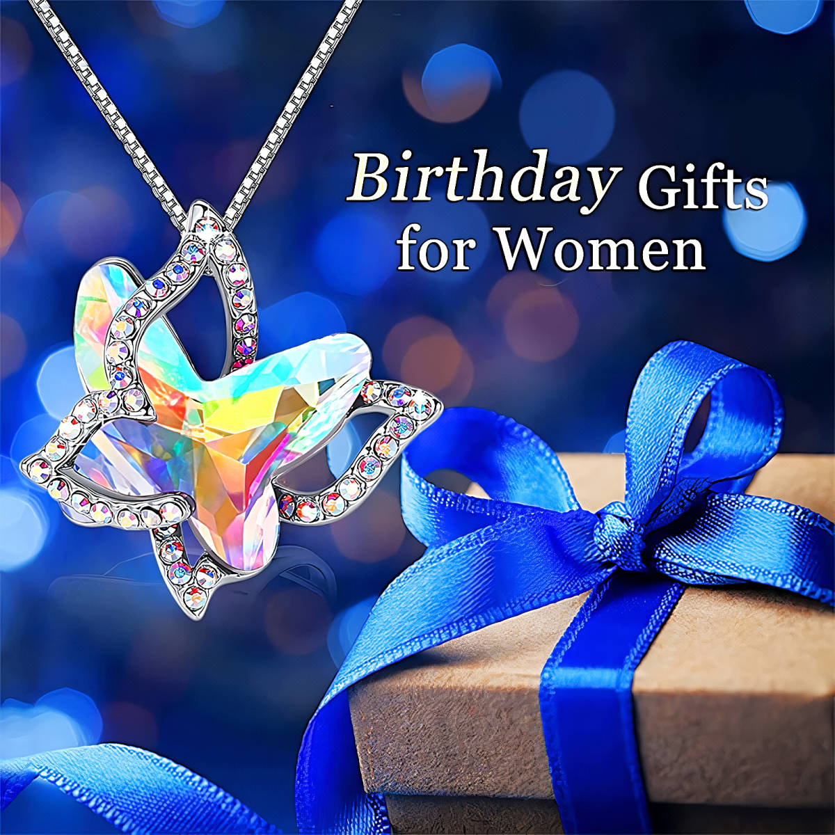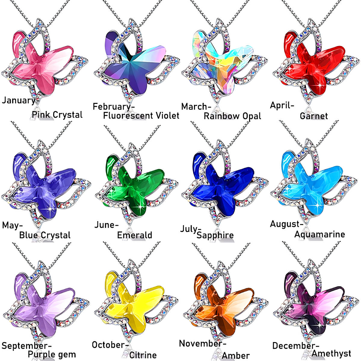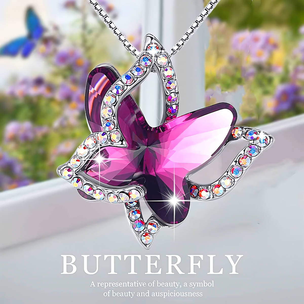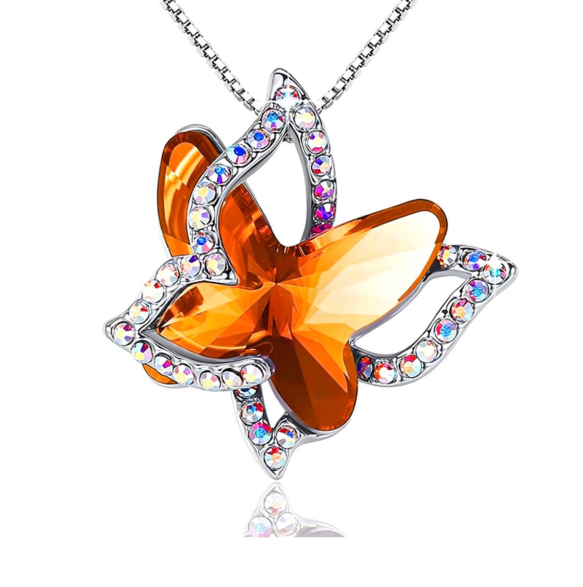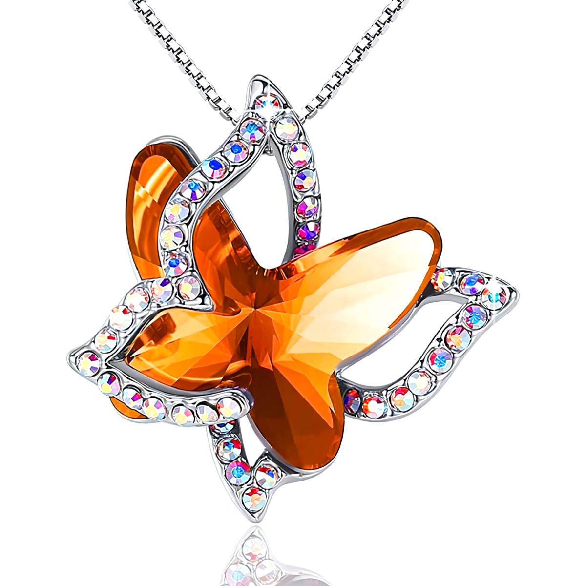 新品★送料無料★オレンジサファイア蝶 虹ダイヤモンド プラチナ仕上 925シルバーネックレス 誕生日プレゼント旅行連休ギフト国内発送