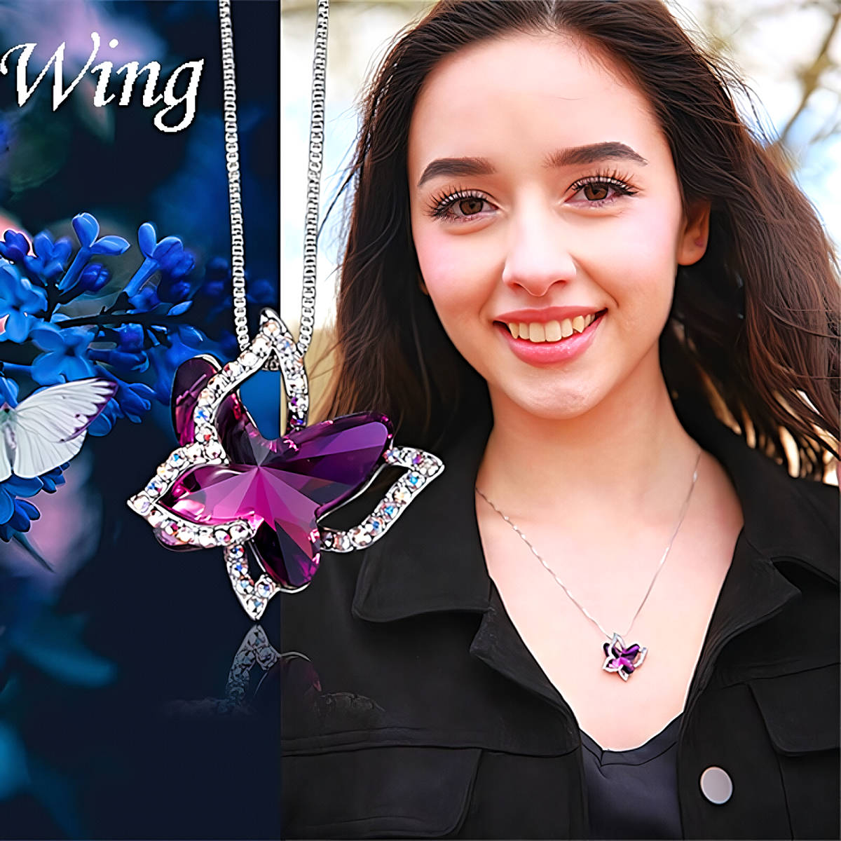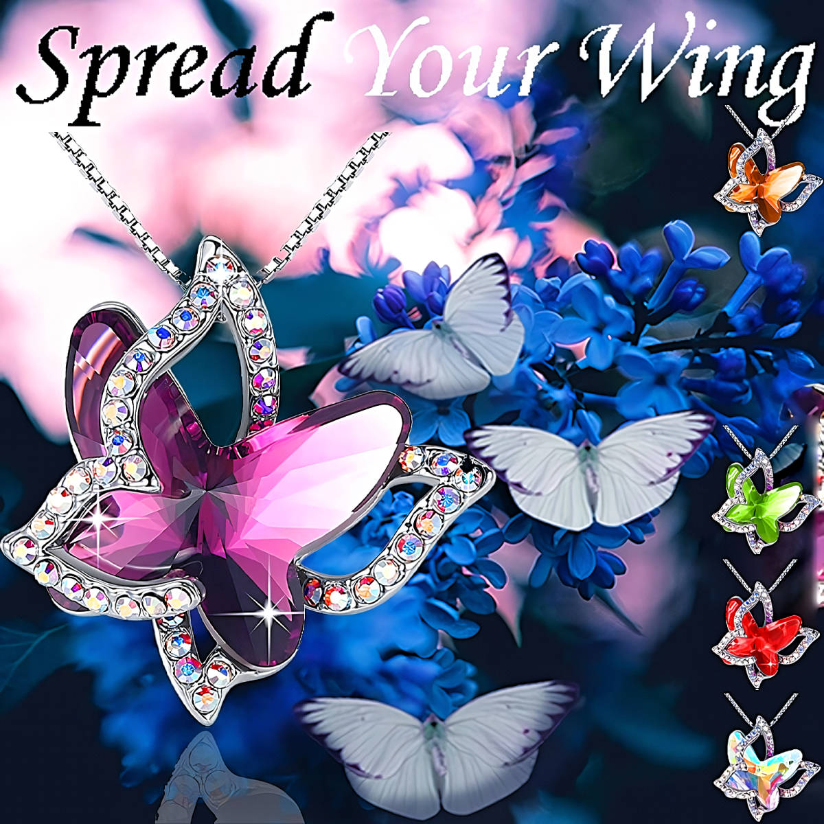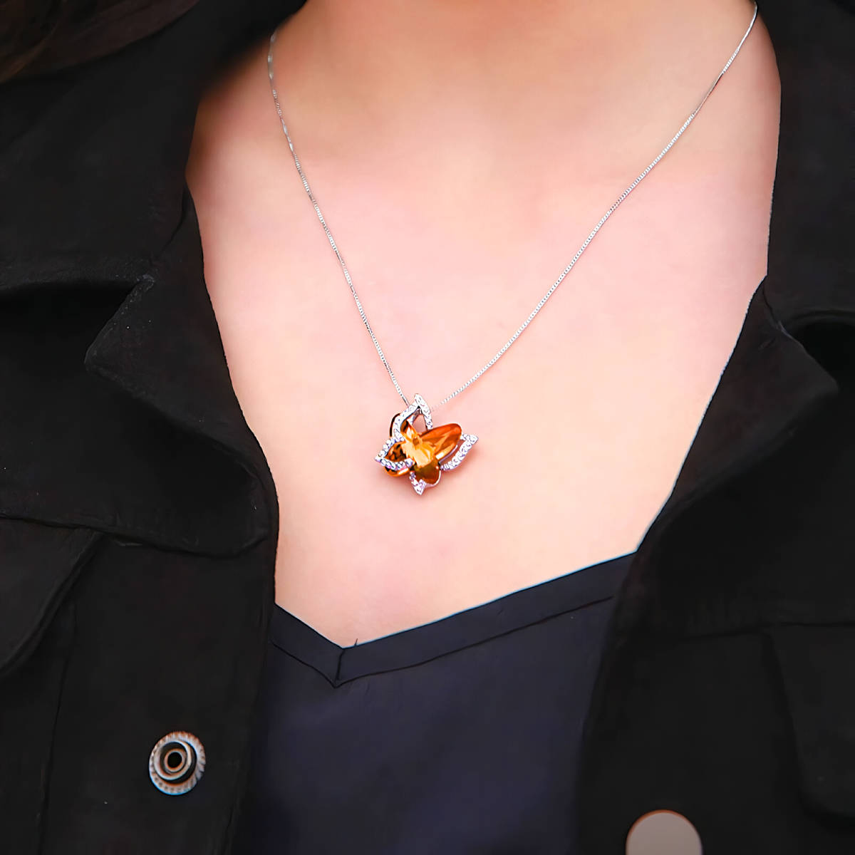 こちら美しいオレンジサファイア蝶、虹ダイヤモンド925シルバーネックレスとなります。