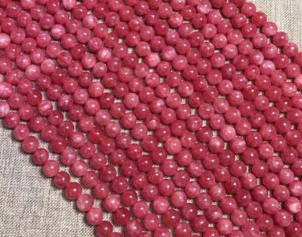 [EasternStar] 海外発送 人造石 3A ロードナイト カルセドニー 薔薇玉髄 Chalcedony 玉サイズ12mm 1連売り 長さ約40cm