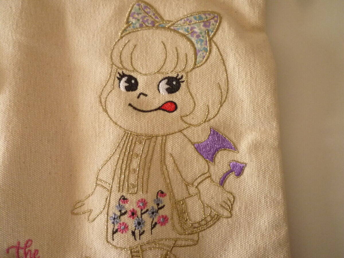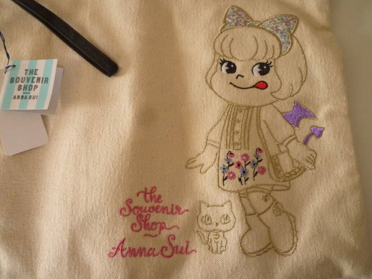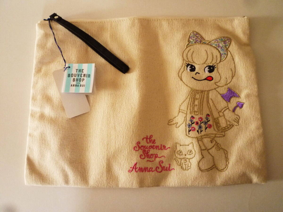 即決新品タグ付 限定アナスイANNASUIペコラちゃん刺繍フラットポーチクラッチバッグペコちゃんスーベニアショップSOUVENIRSHOP不二家未使用
