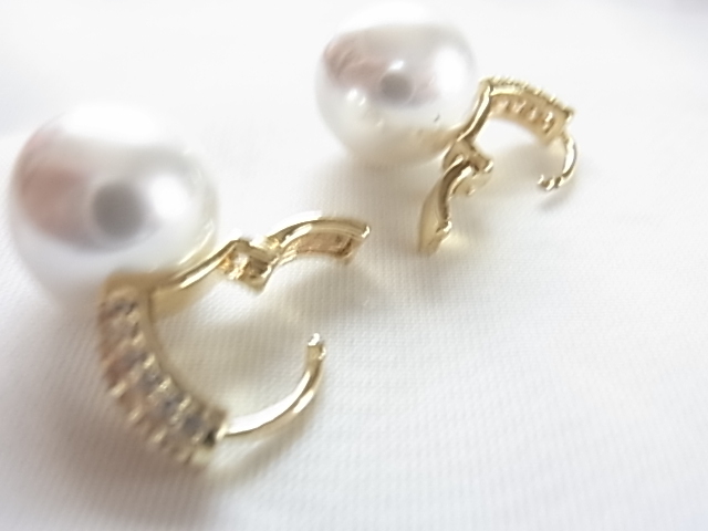 ビンテージ/ヴィンテージ イミテーションパール フェイク真珠にクリアラインストーン輝石 華やかな印象のデザイン 素敵なピアス★
