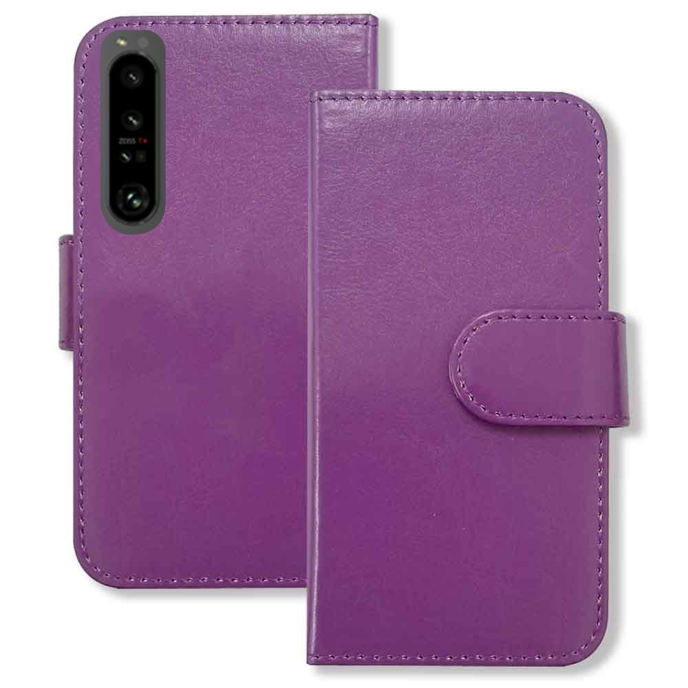 Xperia 1 IV SO-51C SOG06 エクスペリア1マーク4 スマホケース(手帳パープル)手帳型 PUレザー 無地 ケース ダイアリータイプ 横開き カード収納 カバー