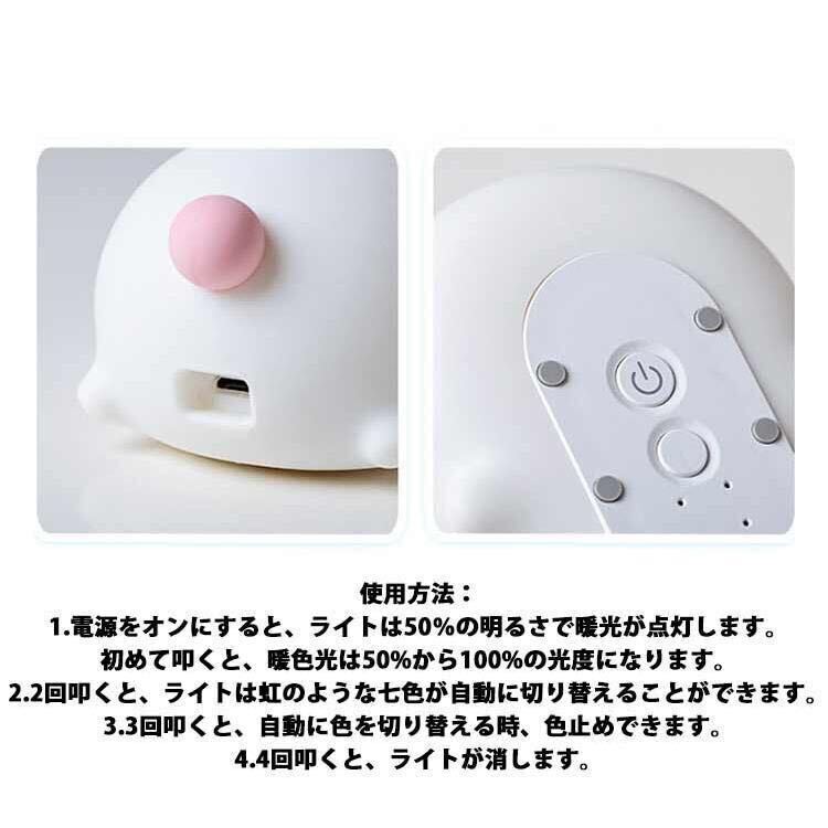 底部のスイッチを押して、うさぎのシリコン本体を手で叩くだけで、光色が切り替えできます。