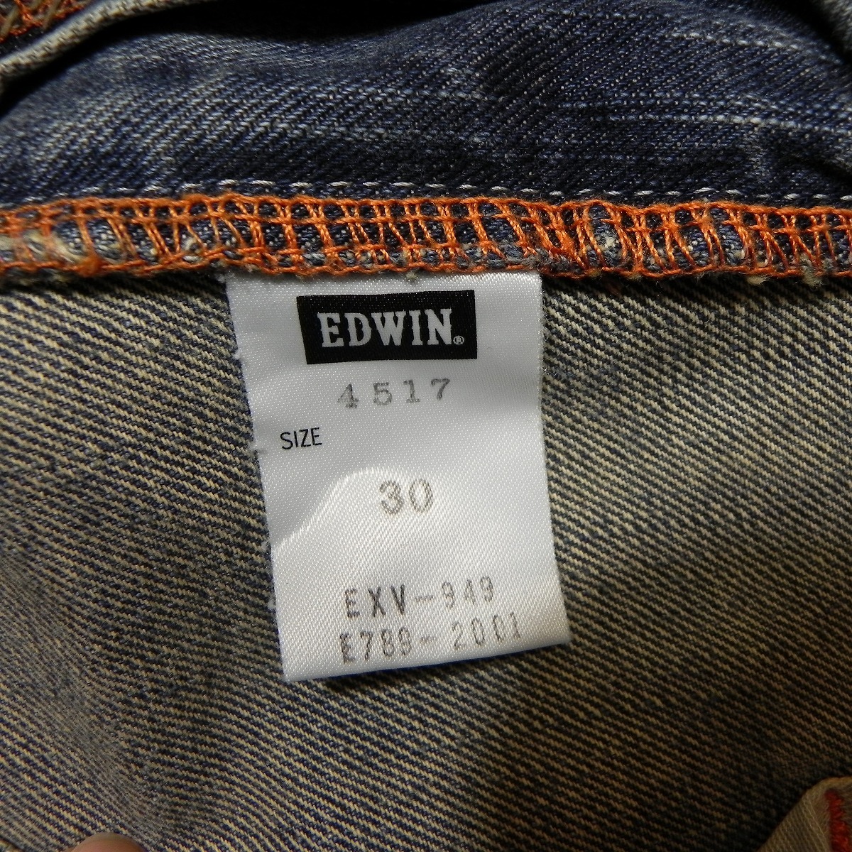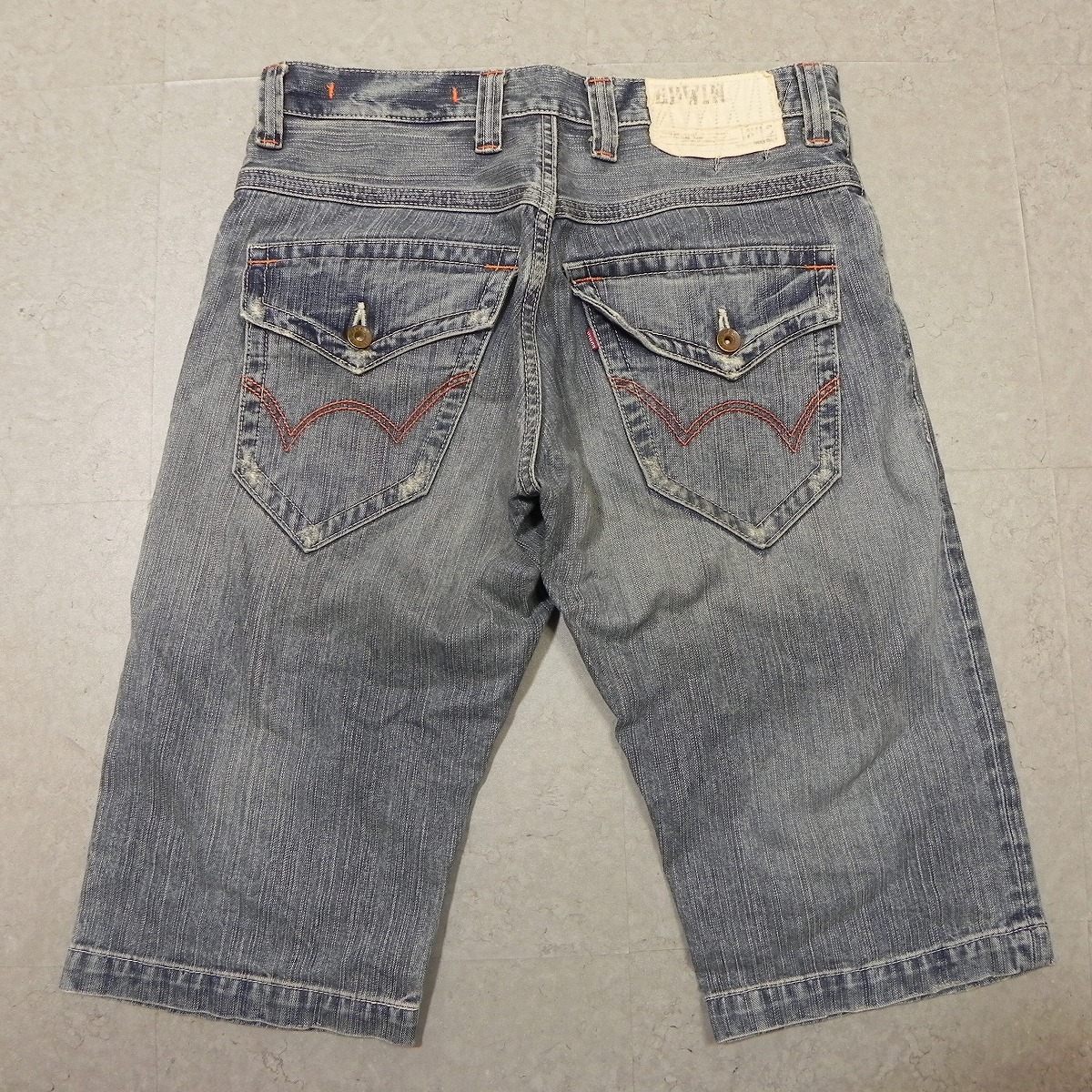 l555★ EDWIN エドウィン 4517 ユーズド加工 ★ デニムショーツ ハーフ ショート ジーンズ Sz.30 古着 即決 ★