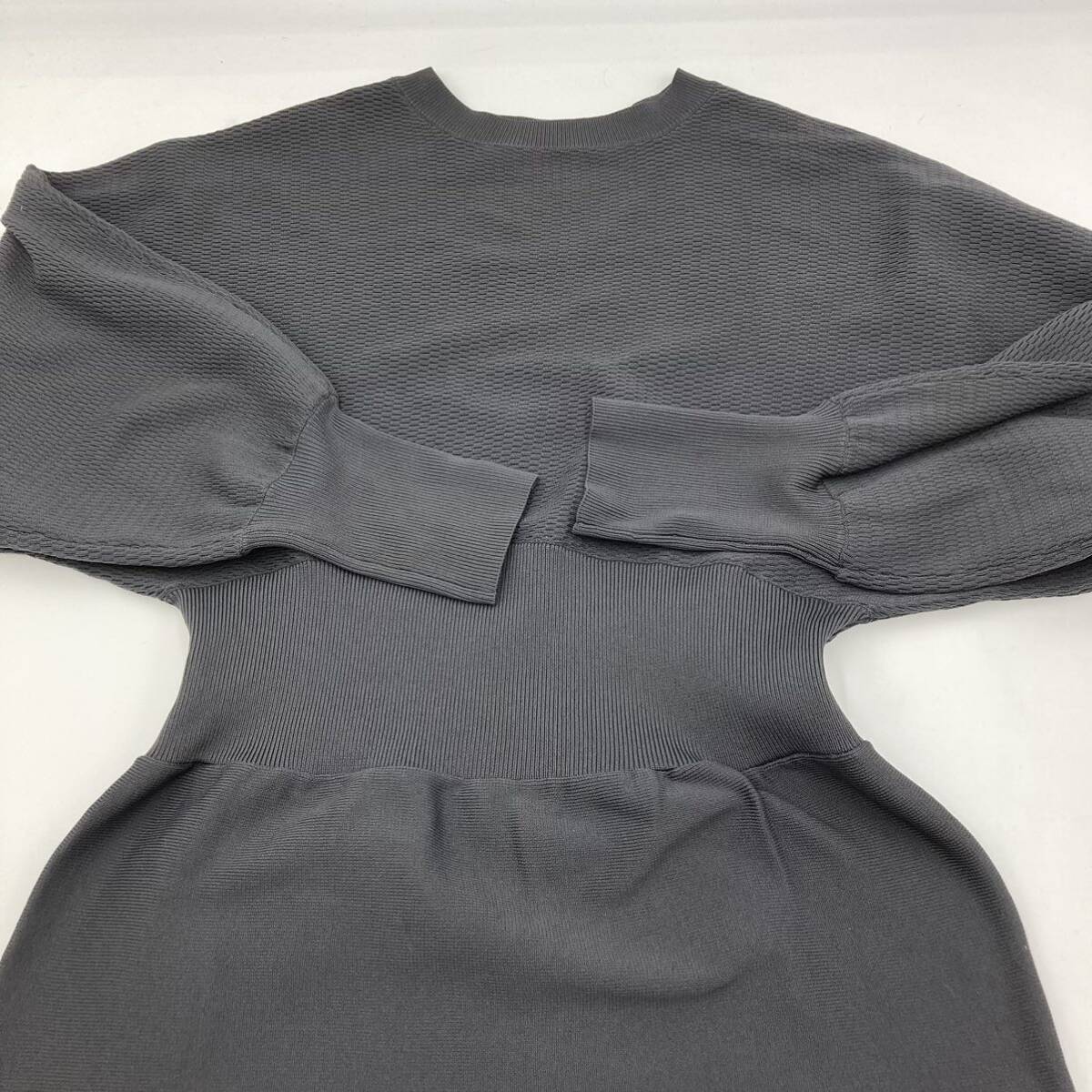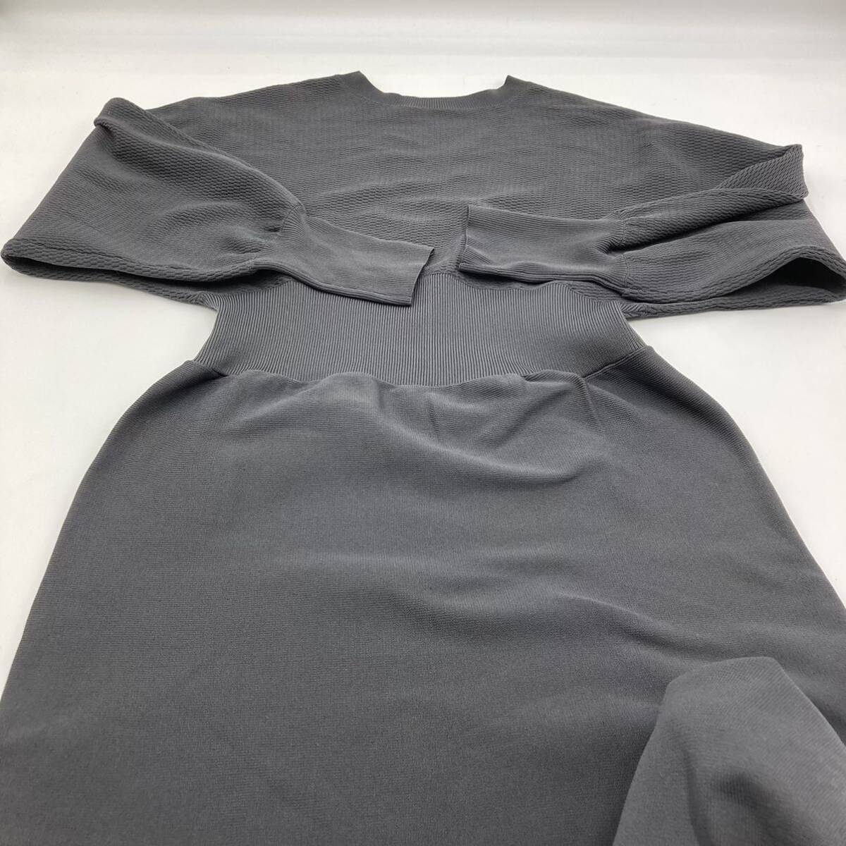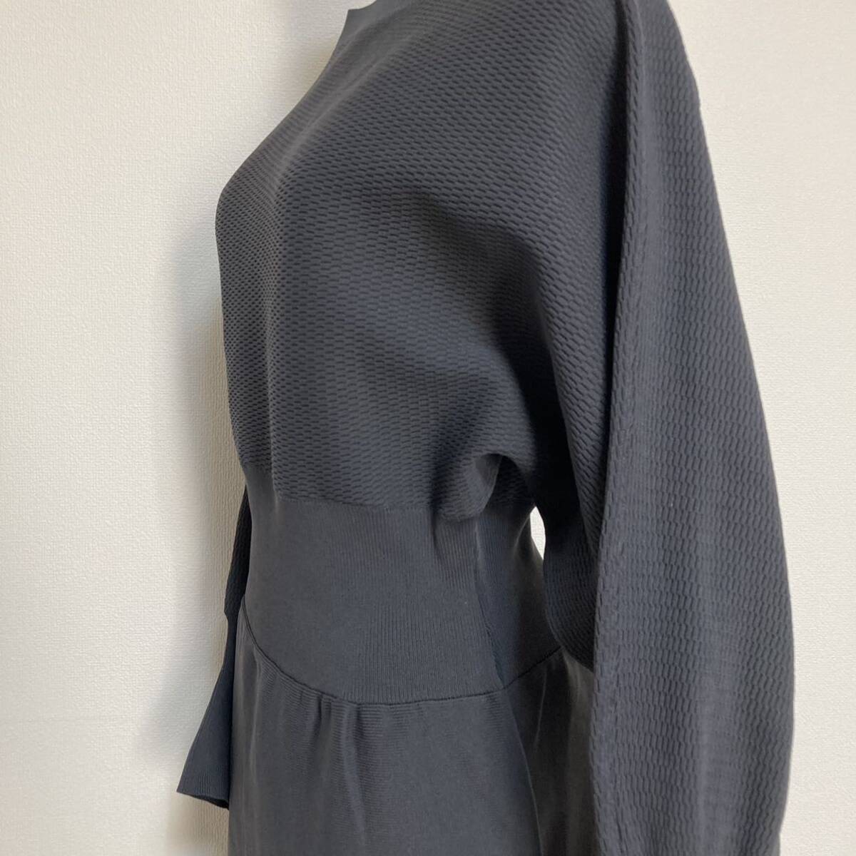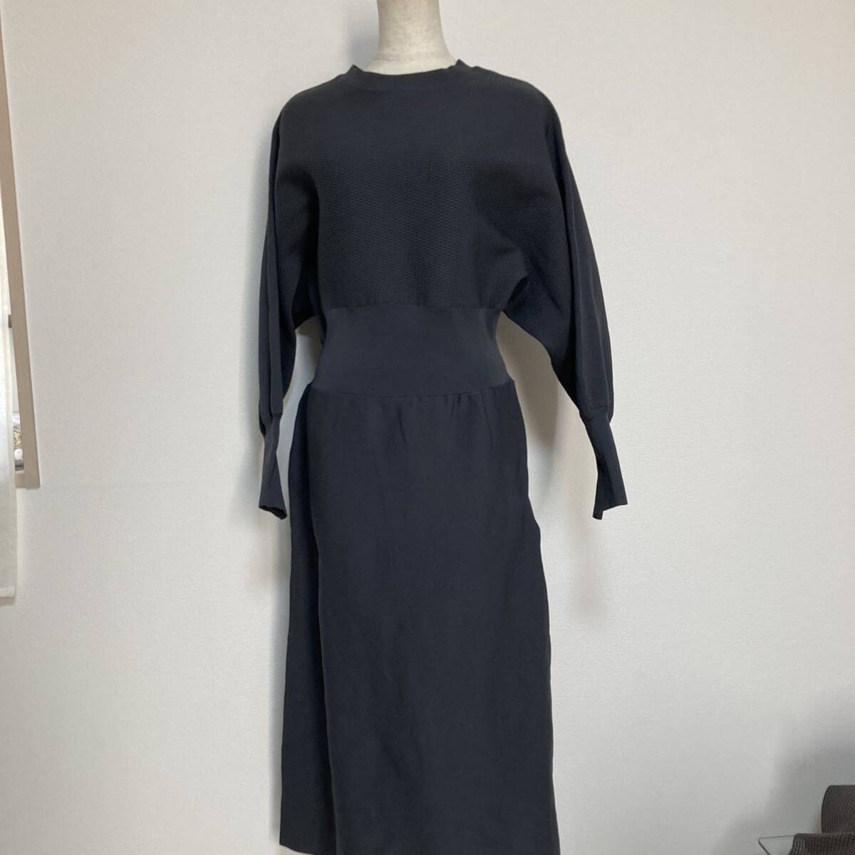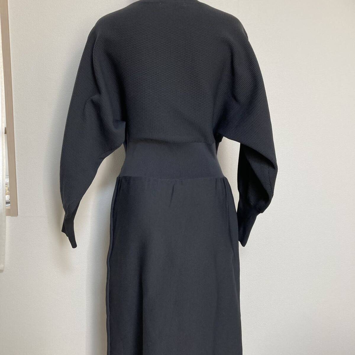 身頃はドルマンシルエットでゆったりとしたデザイン、ウエストマークされたすっきりとしたフレアシルエットとのメリハリのきいた一枚です。
