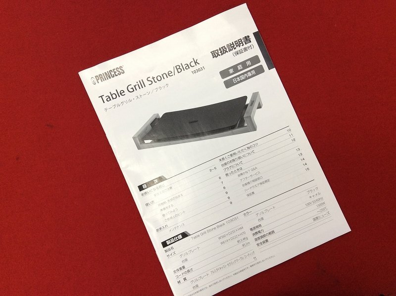 ・開封済未使用品/PRINCESS/プリンセス/テーブルグリル・ストーン/ホットプレート/ブラック/竹製台座/103031/取扱説明書 です。EC19